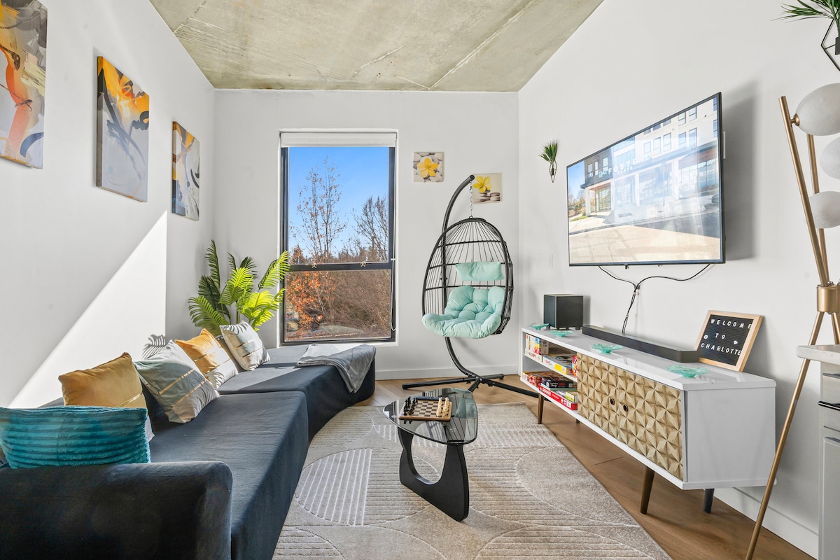 ¡Ubicación, ubicación, ubicación! Disfruta de todo lo que la ciudad de Charlotte tiene para ofrecer desde nuestro lujoso estudio en las afueras de Uptown. Disfruta de la verdadera vida urbana a poca distancia del estadio Panthers, el estadio de béisbol, la fábrica de música y los restaurantes, boutiques y cervecerías más populares de la zona alta de las ciudades. El condominio está ubicado de forma privada en el piso superior con ventanas abovedadas en el techo que dan paso a las vistas y a la luz del sur. Nota: El edificio se encuentra frente a un patio de trenes, puede ser ruidoso.