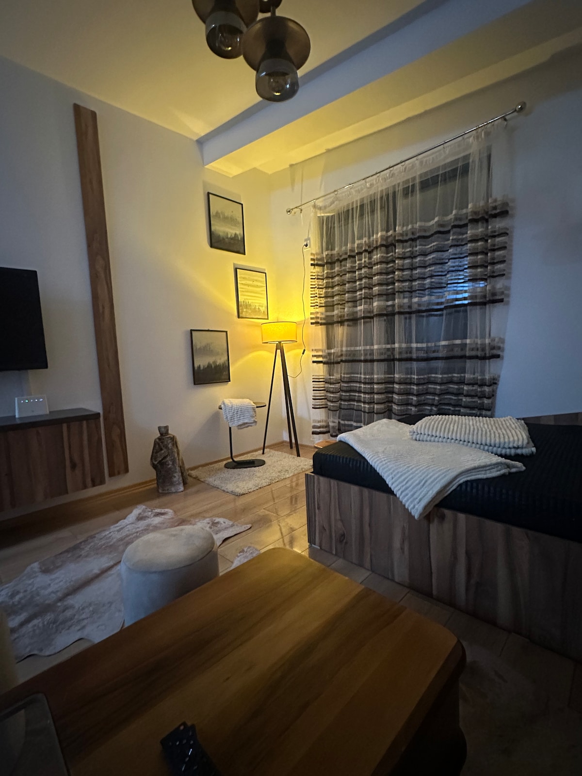 ¡Bienvenido a tu tranquila escapada a la montaña! Este acogedor apartamento combina el encanto rústico con el confort moderno, con paredes de piedra, vigas de madera y muebles únicos hechos a mano por un maestro carpintero local. Ubicado en lo alto de las montañas, el balcón es perfecto para disfrutar de tu té por la mañana en tranquilidad. Rodeado de un bosque de hoja perenne, estás a solo 10 minutos a pie de restaurantes, campos deportivos, senderos para bicicletas y pistas de esquí. Es el refugio ideal tanto para los amantes de la naturaleza como para los aventureros.