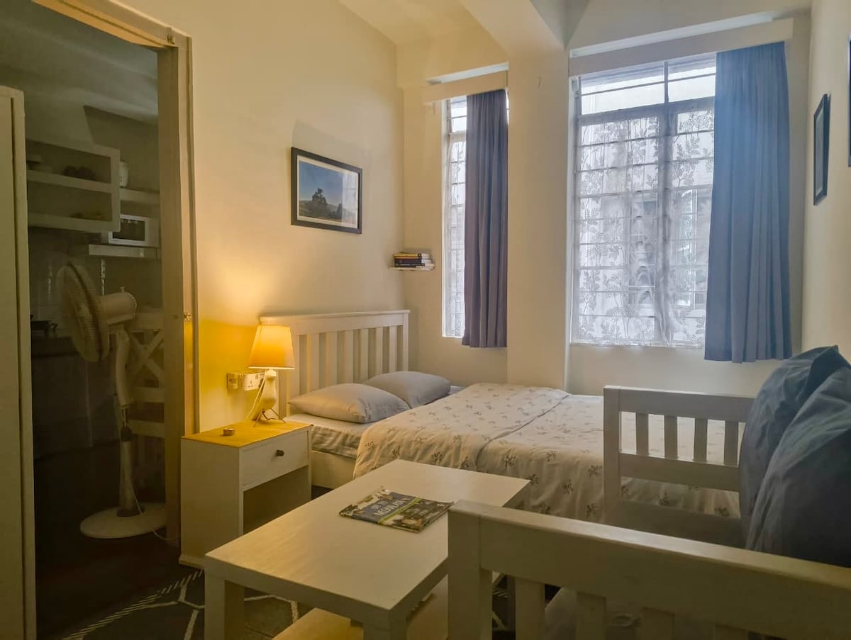Este pequeño y encantador apartamento tipo estudio con azotea se encuentra en el tercer piso y cuenta con un televisor inteligente de 32 pulgadas y artículos básicos de cocina para que puedas prepararte el desayuno. También hay un patio y es ideal para jóvenes que no tienen problemas para subir escaleras. Situado en una de las mejores zonas residenciales y comerciales de Shillong, estamos a solo 5 minutos a pie de la bulliciosa carretera principal de Laitumkhrah, donde puedes encontrar todo tipo de tiendas y algunos de los mejores cafés, bistrós y restaurantes de la ciudad.