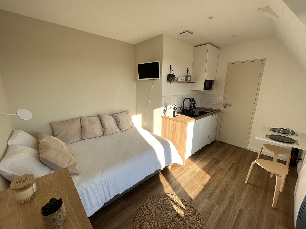 Venga a descubrir nuestro nidito, que es muy acogedor. Estudio con todas las comodidades con entrada independiente y aparcamiento. Alojamiento tranquilo y luminoso a dos pasos de las tiendas .