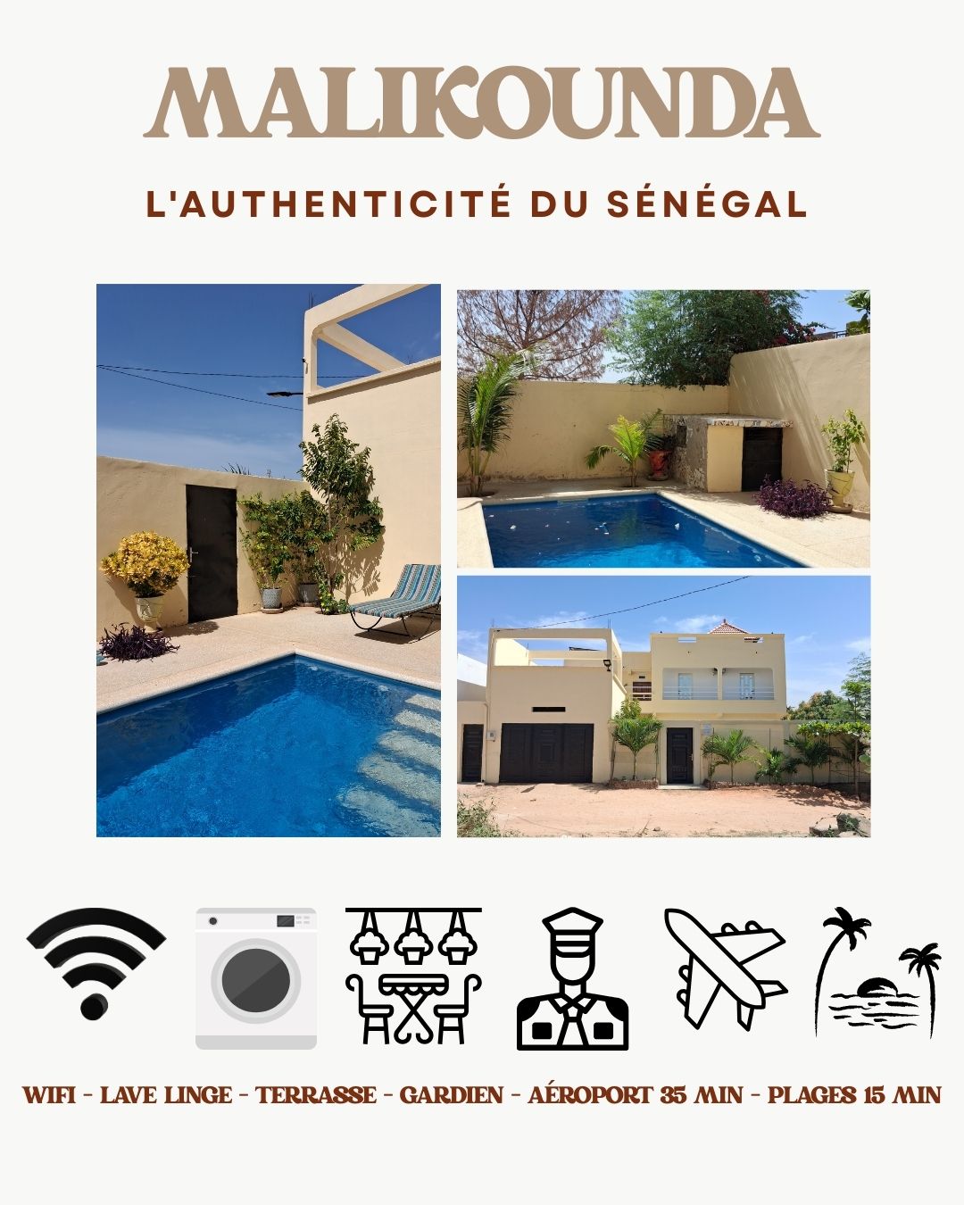 Este alojamiento tranquilo ofrece una estancia relajante para toda la familia. La villa está idealmente situada. Está cerca de la playa, la Somone, Popenguine y Saly. El sitio natural y protegido permite practicar senderismo, paddle surf, ciclismo, surf o kayak. Otras opciones posibles, disfrutar de la comodidad de la villa y su exuberante jardín, relajarse alrededor de la piscina, o descubrir los restaurantes de los alrededores.