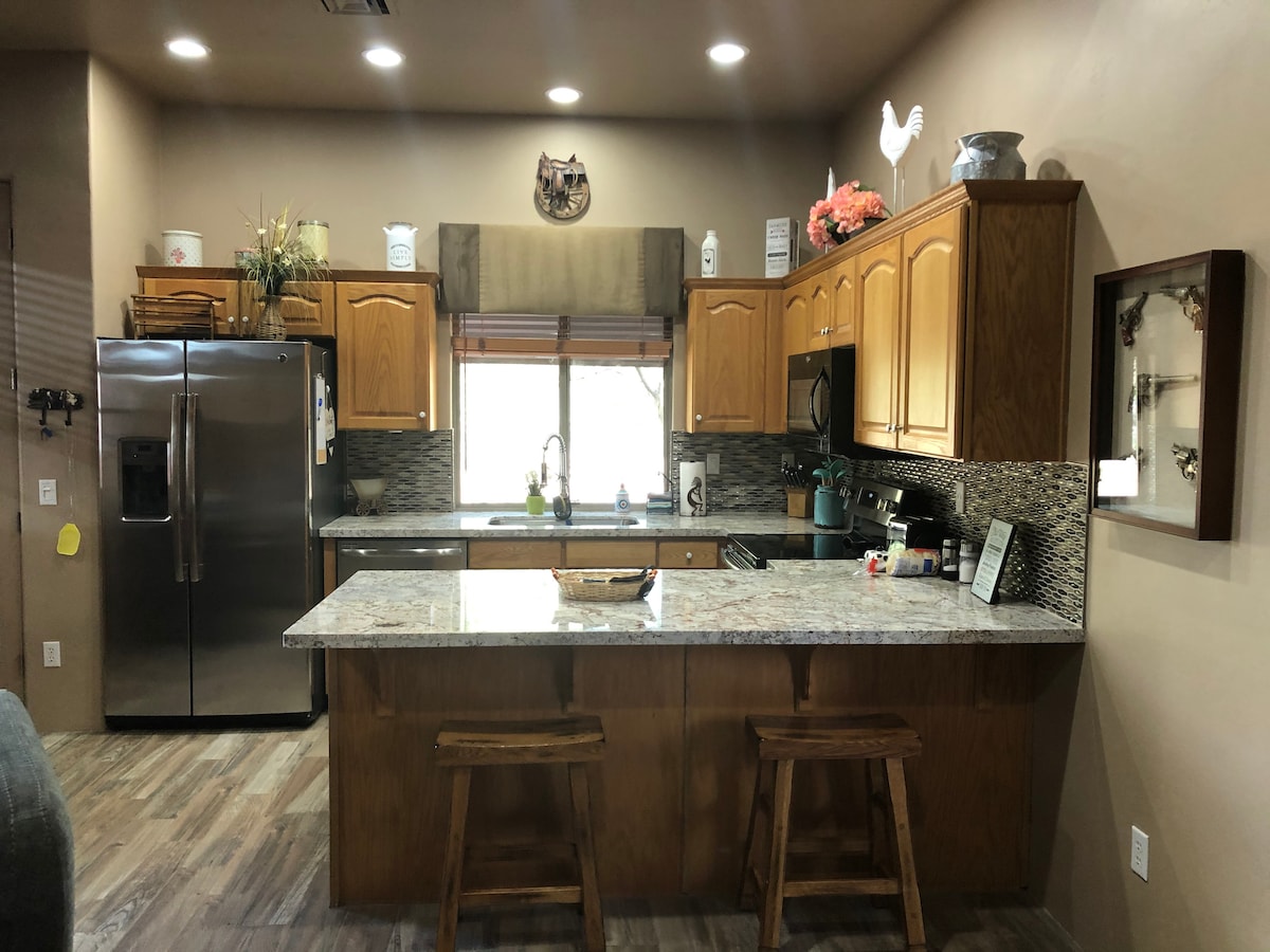 The Hill's Bungalow, una casita maravillosamente encantadora con entrada privada independiente y aparcamiento. Sal por la mañana, contempla el amanecer y siéntate en el porche trasero privado para ver el atardecer. Acabados personalizados y grandes ventanales que dan a una cocina gourmet/gran sala común, medio baño, TV de 50 pulgadas y wifi de alta velocidad. Una cama tamaño king con un lujoso baño completo hace que relajarse sea fácil. A poca distancia de rutas de senderismo, a 2 minutos en coche del centro de FH, a 10 minutos de Scottsdale o a 35 minutos de Sky Harbor.