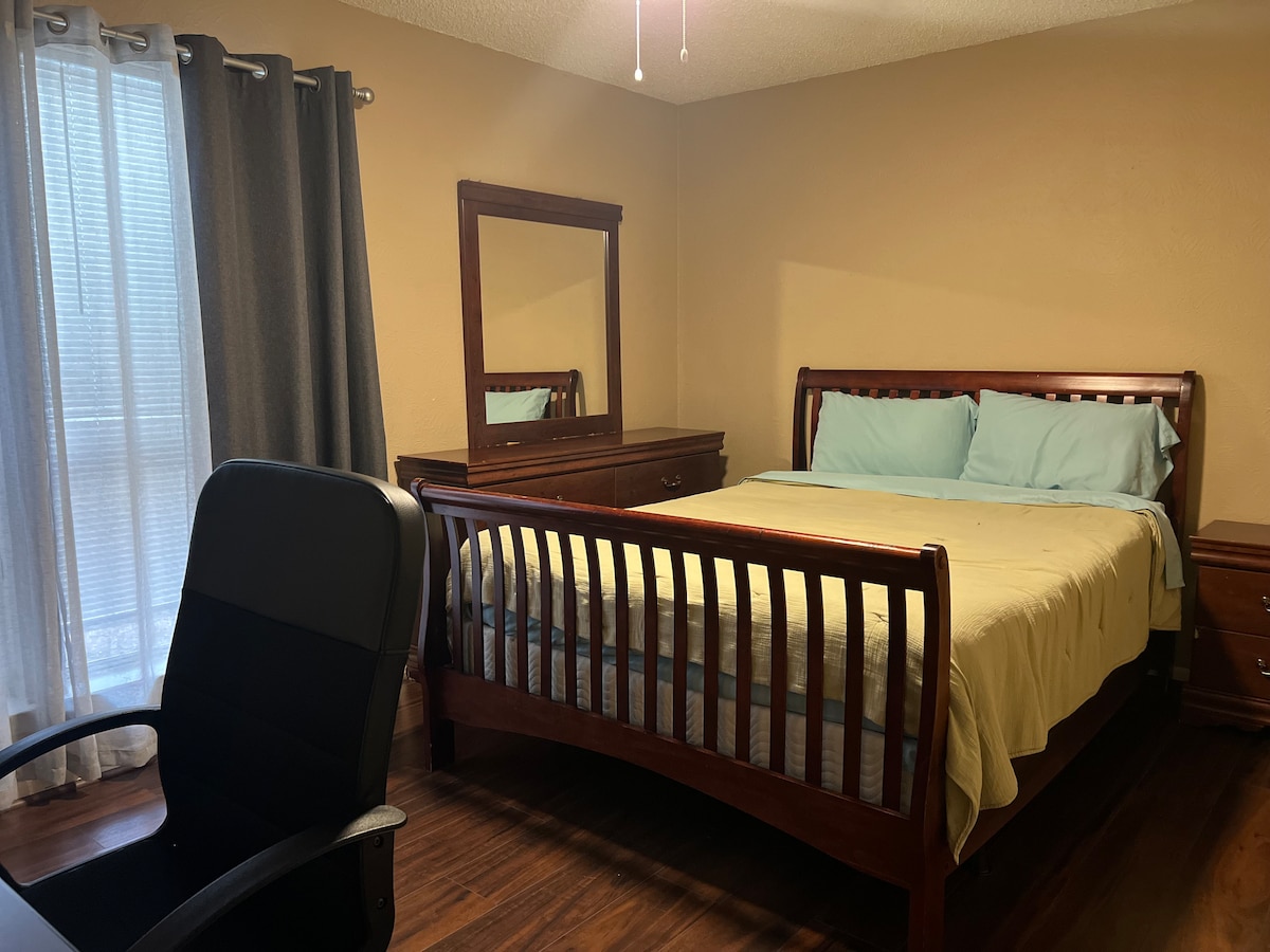 Una estancia estupenda, este tesoro escondido forma parte de una propiedad dúplex en la zona de North Dallas. Con sus múltiples camas, baños y llamativas obras de arte, tiene espacio suficiente para alojar cómodamente a 4 personas. Con una ubicación a solo 3 minutos del centro comercial Galleria Dallas y a 16 minutos del centro de Dallas, tendrás mucho que hacer durante tu estancia. ¡No esperes y reserva este Airbnb ahora!