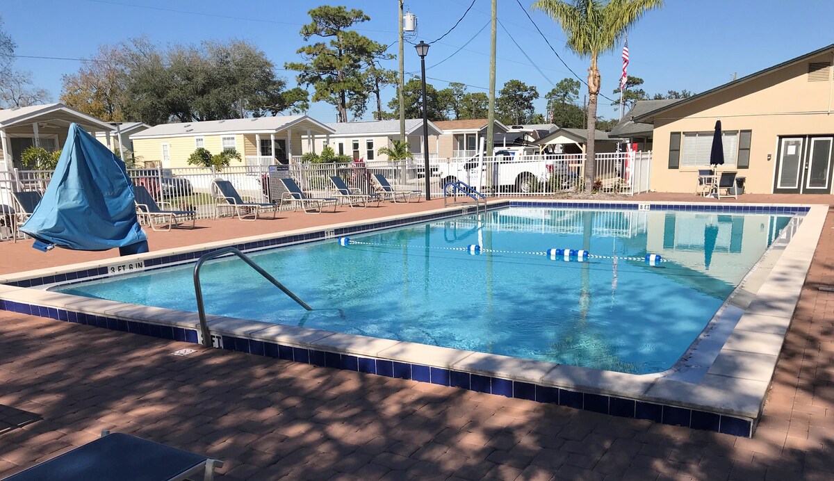 Nuestra pequeña casa en Mill Creek RV Resort está a pocos minutos de Disney, Universal, Sea World y la mayoría de las atracciones de la zona. Nuestra acogedora casa de campo tiene un dormitorio privado, cocina completa, isla grande, sala de estar, baño, lavadora/secadora gratuita y el porche delantero perfecto. Hay una entrada privada y aparcamiento gratuito. ¡El centro vacacional es tranquilo y tiene muchas comodidades! Tenemos cuatro casas rurales pequeñas. Visita nuestra página de perfil: http://airbnb.com/users/132701751/listings