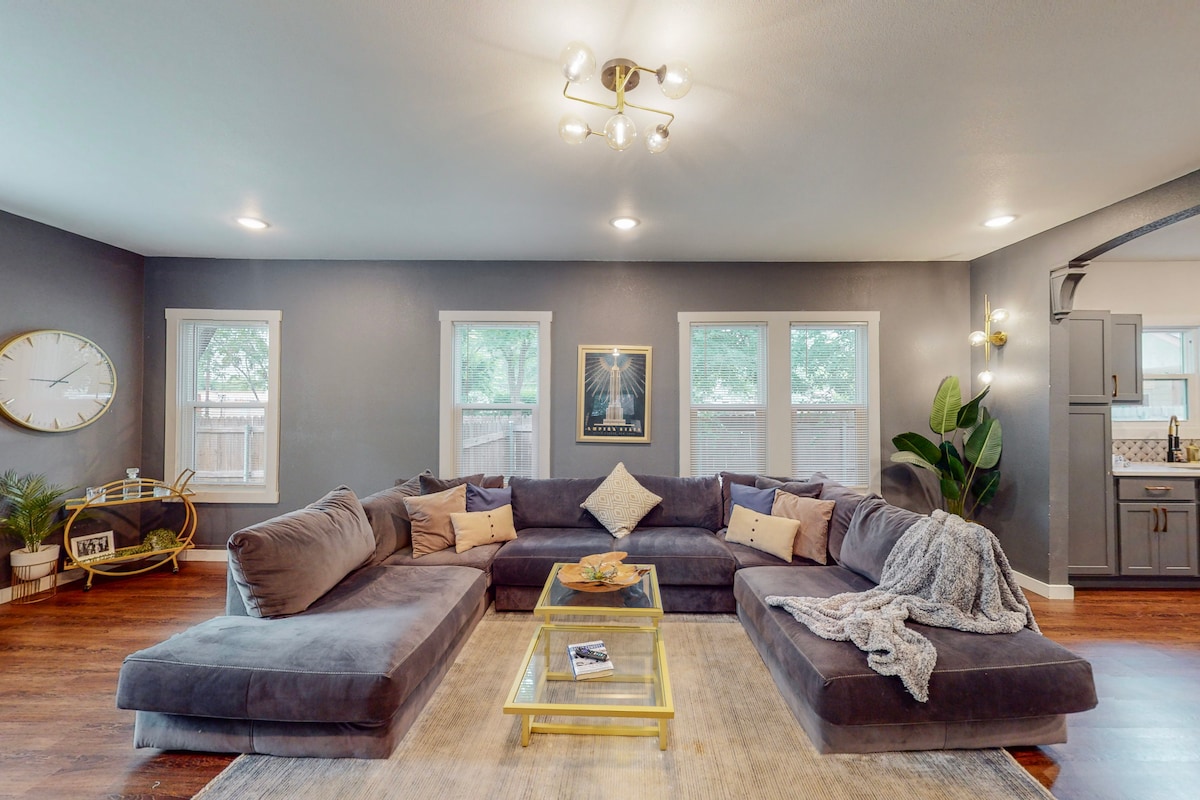 Walk to AT&T! Cozy 3BR/2BA w/ Bar & Fireplace