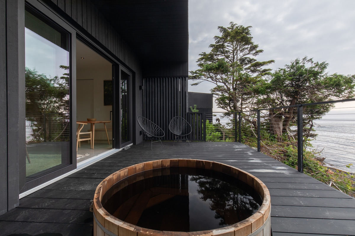 SALTWOOD - Un buen lugar Instagram: @saltwoodbeachhouse LUJO RELAJADO CON VISTAS ININTERRUMPIDAS. La escapada definitiva en Ucluelet BC. Situado en el océano Pacífico y en el sendero Wild Pacific Trail. Contempla las tormentas junto a tu chimenea o disfruta de la puesta de sol desde tu jacuzzi privado. 2 dormitorios con todas las comodidades. Cocina gourmet, ventanas del suelo al techo, chimenea de gas, TV Frame, terraza privada con jacuzzi y esa vista. Capacidad para 4 adultos y, por supuesto, es el refugio romántico perfecto para 2.