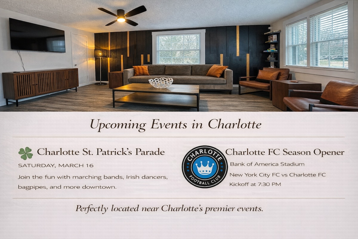 Bienvenido a nuestra renovada casa clásica con comodidades modernas: tu escapada relajante a solo 7 minutos del centro de Charlotte, estadios, estadios, estadios y el aeropuerto CLT. Fácil acceso a la I-77, I-85, I-277. Colchones ✨ híbridos Televisores ✨ inteligentes en las habitaciones y la sala de estar ✨ Wifi y cafetería ✨ Cocina totalmente abastecida ✨ Patio vallado + terraza ✨ Llegada autónoma y estacionamiento gratuito 🐶 2 perros como máximo (sin gatos). No apto para huéspedes con alergias a los perros. ✨ Sin tarifa de limpieza y sin tarifa por mascotas, ¡un servicio raro! Distribución de ✨ un solo nivel: no hay escaleras para navegar.