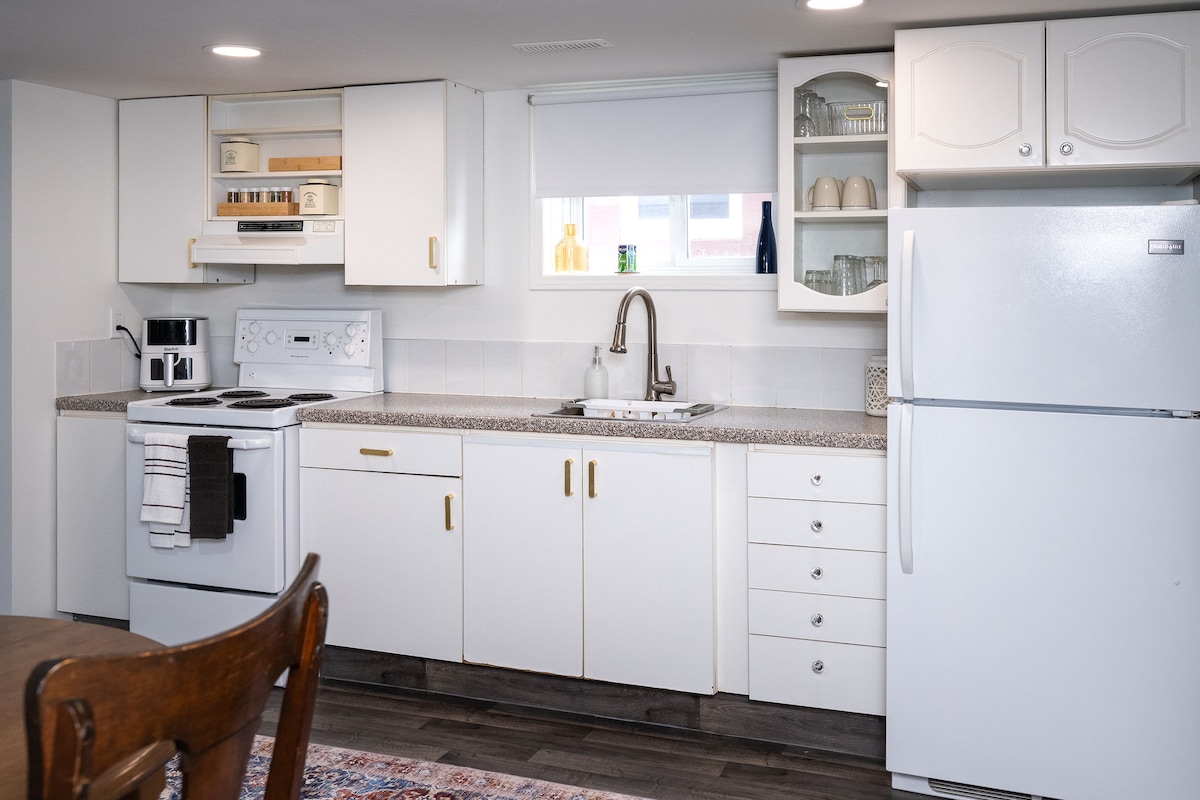 Esta suite cuenta con una cocina de tamaño completo y lavadoras. También hay wifi y un televisor inteligente con Telus Optik. Puedes utilizar la televisión para acceder a tus cuentas personales de streaming. El dormitorio tiene una cama tamaño queen, un tocador y un calentador portátil para las personas a las que les gusta el calor y la comodidad. Los anfitriones viven arriba con Fleetwood, un Bernedoodle amable y educado. Somos muy conscientes del ruido. Sin embargo, se espera un ruido normal en el sótano. Si tienes alguna pregunta, no dudes en ponerte en contacto conmigo.