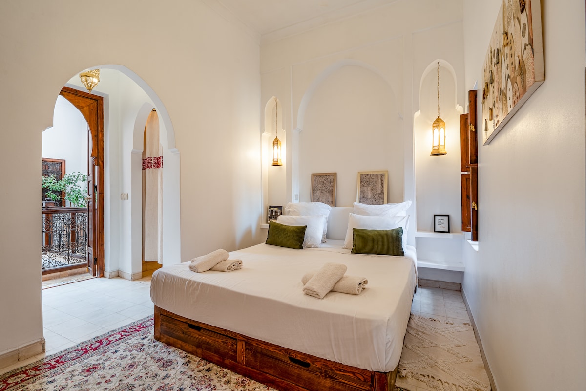 ¡No puedes estar más céntrico! Riad el Nil se encuentra en el corazón de la medina, a solo 2 minutos a pie de la plaza principal de Jemaa Al Fna. Este encantador Riad no solo te ofrece la oportunidad de experimentar el auténtico estilo de vida marroquí, sino que también es el lugar perfecto para explorar la ciudad, junto con sus muchos y deliciosos restaurantes, tiendas y sitios. El riad se limpia a diario y es posible organizar desayunos y cenas bajo petición.