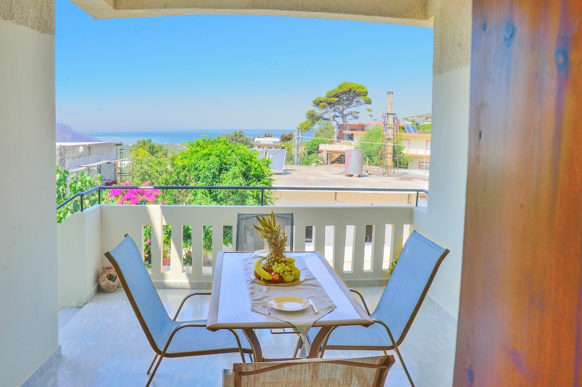 Apartamento de 50 metros cuadrados, cómodo, moderno, espacioso, luminoso y ventilado, con grandes balcones para disfrutar de la vista panorámica de Falasarna. Cuenta con mosquiteras y contraventanas para protegerse de los insectos. Ambiente tranquilo y destinos cercanos desde playas exóticas. El coche es necesario en esta zona y porque la playa de Falassarna está a 2 km. Debido a la pandemia, antes de cada nueva llegada, nos aseguramos de desinfectar las superficies que los visitantes suelen tocar.