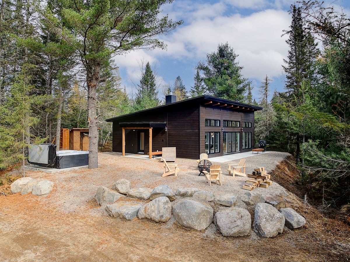 Profitez de l'effet apaisant de la nature en séjournant dans ce chalet contemporain à fenestration abondante en plein coeur de la forêt. Tremblant est magnifique, peu importe la saison. Destination plein air de rêve, vous serez à 8 minutes du Mont-Blanc et 20 minutes du Mont Tremblant. Que ce soit pour la randonnée, le ski de fonds, la raquette ou la motoneige, des sentiers sont accessibles facilement dans toutes les directions. Sans oublier le célèbre P'tit Train du Nord à 3 minutes de route.