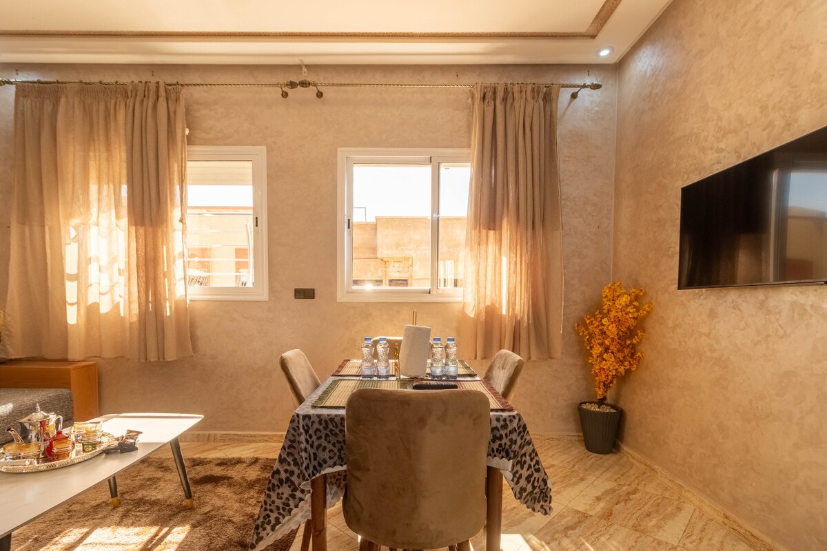 🤩Wow effect assuré🤩 Plus qu'un logement : UNE EXPÉRIENCE Vivez là à 💯% Jacuzzi & sauna pour une détente absolue après vos visites. 3 chambres climatisées, TV et literie de luxe : king, queen et lits superposés. Grand salon multi-thèmes avec écran géant : Netflix et Amazon Prime. Cuisine ultra équipée et WIFI haut débit. En plein centre ville nouvelle, accès facile aux lieux historiques, restaurants, cafés et commerces. Couples marocains non mariés pas acceptés.