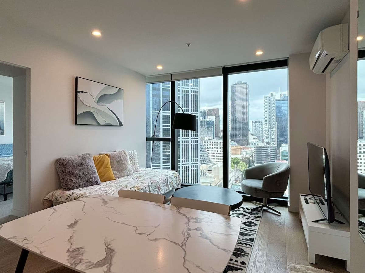 INCREÍBLES VISTAS A LA CIUDAD Este espacioso apartamento totalmente equipado cuenta con: - 1 dormitorio con armarios y sábanas. - 1 sofá cama en el salón. -1 baño - Espacio habitable más grande de lo habitual. - Cocina totalmente funcional. - Mesa de comedor de 6 plazas con vistas a la ciudad. Situado en una zona privilegiada en el corazón de Melbourne, esta ubicación privilegiada es la más adecuada para viajeros de negocios, parejas turísticas o padres con niños pequeños. Junto a Melbourne Central, State Library. Dentro de la zona de tranvía gratuito, a poca distancia a pie de supermercados, tiendas y zonas de restauración.