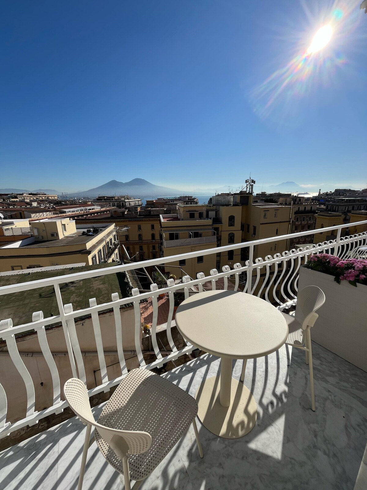 Enjoy a unique experience in the splendid Vesuvius view Suite+Breakfast and Welcome Wine.Choosing Mazzocchi means trusting someone who puts the guest experience first.Comfort,reliability,and tailored attention to detail make Mazzocchi your guarantee of relaxation.With this accommodation in the center of Naples,your family will be close to everything.The Airbnb is welcoming,bright, ,with 4 beds ,a fully equipped kitchen,washing machine,elevator.Wi-Fi•Free parking/Secure Parking.Transfer