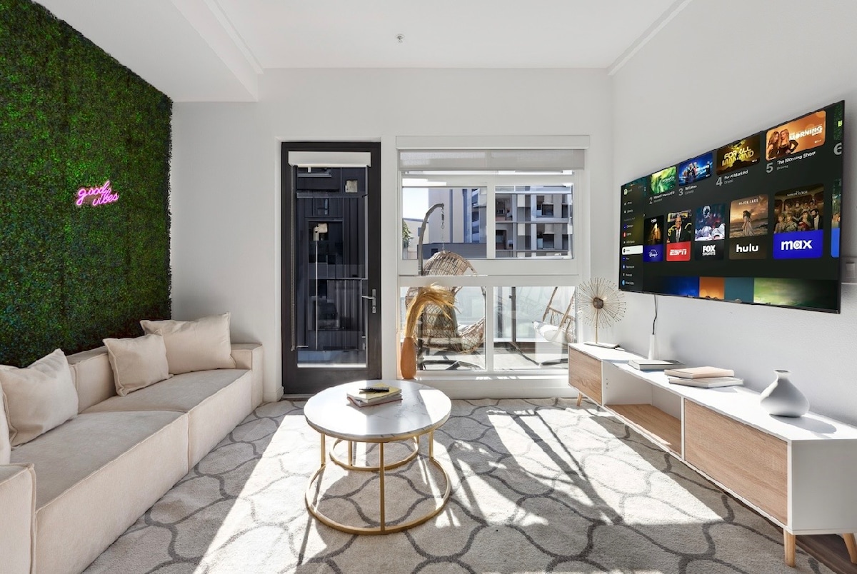 Airbnb puede parecer un hotel, y este lo es. Ubicado en Mid-Wilshire, entre Miracle Mile y Beverly Hills, este moderno 1BR ofrece una de las mejores ubicaciones centrales de Los Ángeles. Disfruta de estacionamiento gratuito, piscina estilo resort, jacuzzi, gimnasio y zona de barbacoa, todo en el lugar. Silencioso, elegante y perfectamente ubicado para la vida urbana, viajes de negocios o una estadía relajada en Los Ángeles con servicios de nivel hotelero y la comodidad de un apartamento privado.