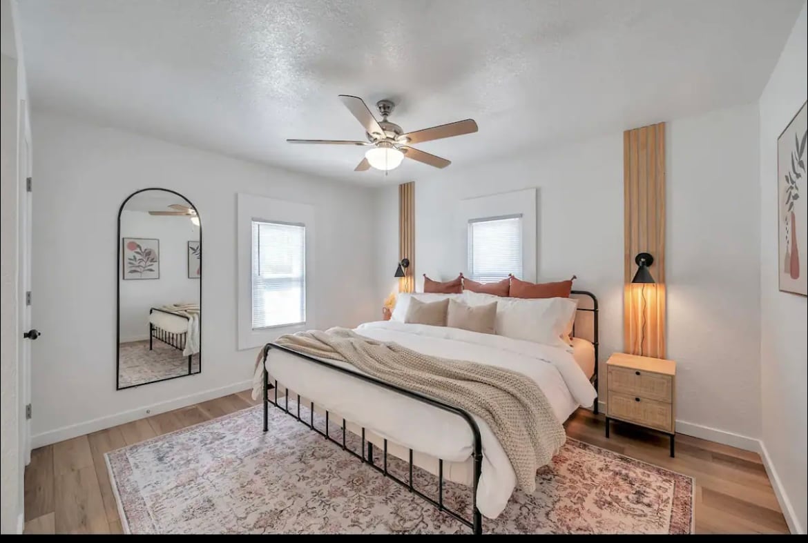 Entra en un refugio cuidadosamente diseñado donde la comodidad se encuentra con el estilo. La suite principal ofrece una cama tamaño king, un lujoso colchón, un escritorio incorporado, un vestidor y un baño privado. Los techos abovedados y un diseño abierto crean una sensación de amplitud, mientras que la planta de dormitorio dividido agrega privacidad. En el exterior, un patio protegido con bar, TV, nevera de vino y máquina de hielo prepara el escenario para las noches relajantes, junto con una piscina privada y una acogedora fogata: tu propia porción del paraíso de Florida.
