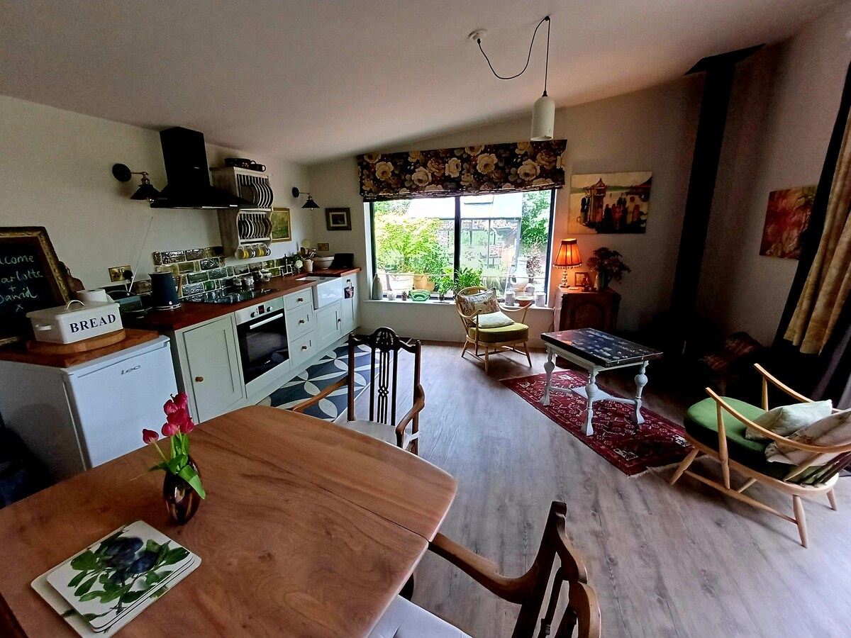 Bienvenido a Cookbarn, una conversión de granero única y de planta abierta situada en las estribaciones de los Mendips y a solo unos minutos a pie del centro del encantador pueblo de Winscombe en Somerset. Perfecto para amantes de la comida, chefs, influencers, ciclistas y amantes de la naturaleza. El granero está lleno de estampados enmarcados, plantas y detalles marroquíes que adornan las paredes, añadiendo un toque de encanto exótico al espacio. Cookbarn: una mezcla inolvidable de encanto rústico, lujo moderno e inspiración culinaria.