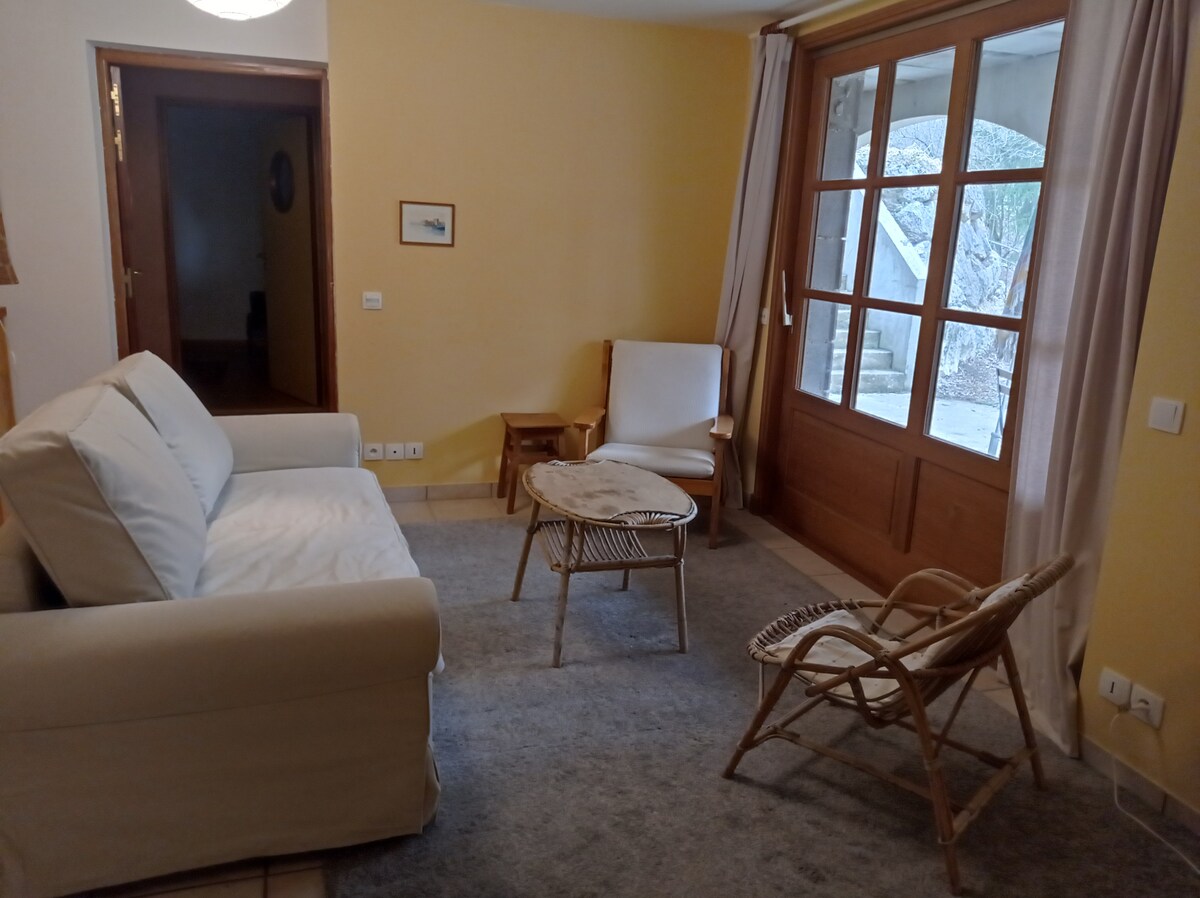 Casa rural, totalmente renovada y equipada, de 30 m2 (para 2/3 personas) situada en un pueblo de campo tranquilo y apacible. Estudio independiente en una casa. Zona de baño: ducha, inodoro, lavadora. Zona de cocina: horno, placa de cocción de gas. Zona de dormitorio: cama de 2 plazas 140*190, un colchón inflable o una cuna bajo petición. Zona de estar con un sofá cama. No se admiten animales ni fumadores. Estación de esquí más cercana a 20 km. Cerca de todos los comercios a 12 km .