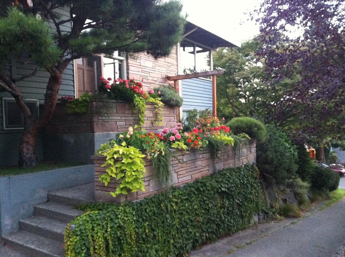 ¡Toda la casa es tuya! 2 dormitorios privados en plantas separadas con cómodas camas tamaño queen y 2 baños, una cocina completa, sala de estar y comedor, etc. La casa de más de 100 años está llena de arte y carácter. Se encuentra en una tranquila calle residencial en Mt. Baker, uno de los barrios más antiguos y diversos de Seattle. Convenientemente ubicada justo al sur del centro de la ciudad y cerca de las principales autopistas. A tiro de piedra encontrarás varios parques preciosos, barrios vibrantes y el prístino lago Washington.
