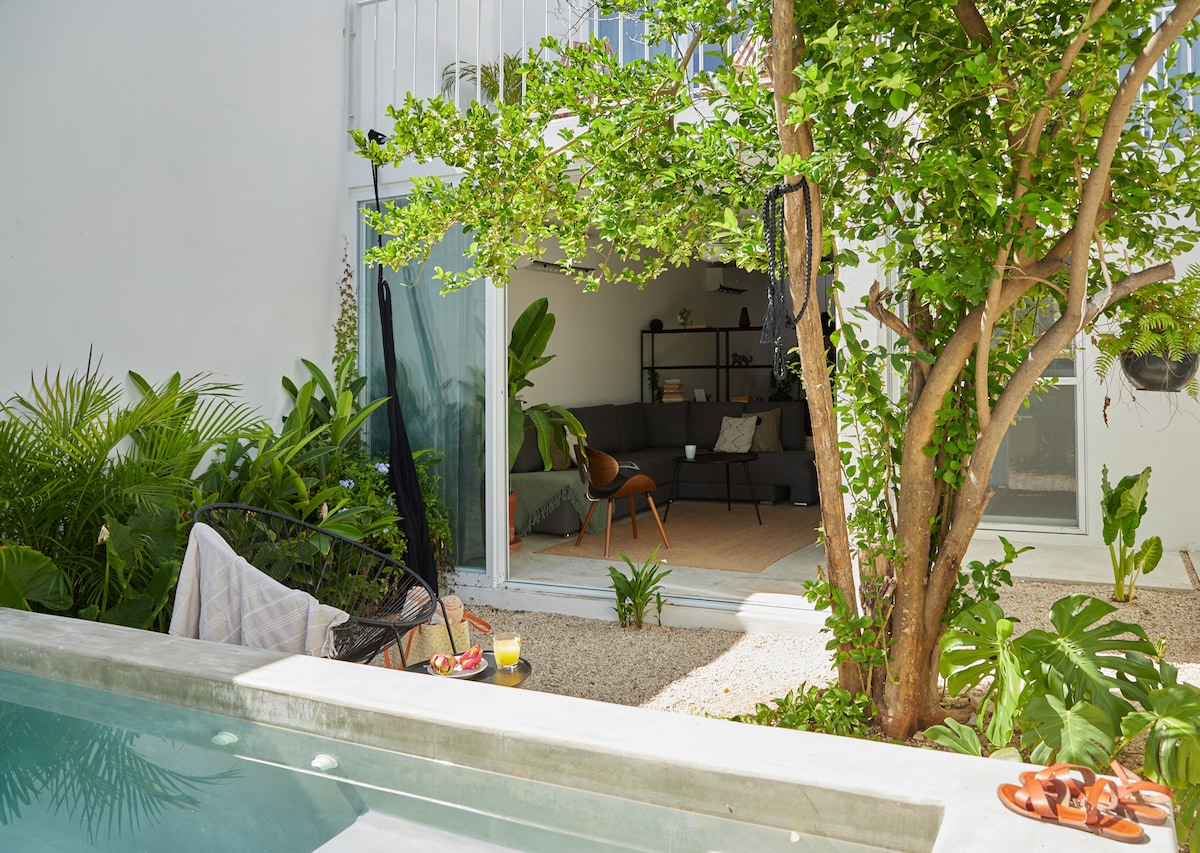 Casa con piscina estilo cenote en el centro