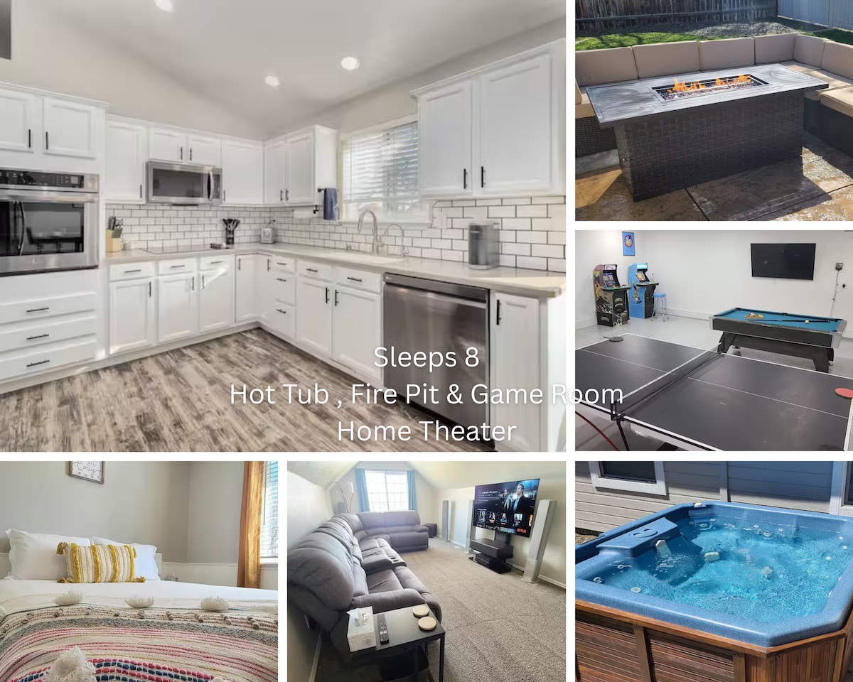 ¡The Modern Farmhouse ha sido recientemente remodelada con comodidades de lujo y todo lo que necesitas para una estancia cómoda! Disfruta de tus propias deliciosas comidas caseras en la hermosa cocina, reúnete en el comedor con capacidad para 8 personas, disfruta de una película en Netflix o Disney+ en un enorme televisor OLED 4K de 65" y 7.2 Klipsch Surround Sound con un gran sofá modular con capacidad para toda la familia. En el patio trasero encontrarás asientos al aire libre con una chimenea, una bañera de hidromasaje para 5 personas y una barbacoa de 6 quemadores.