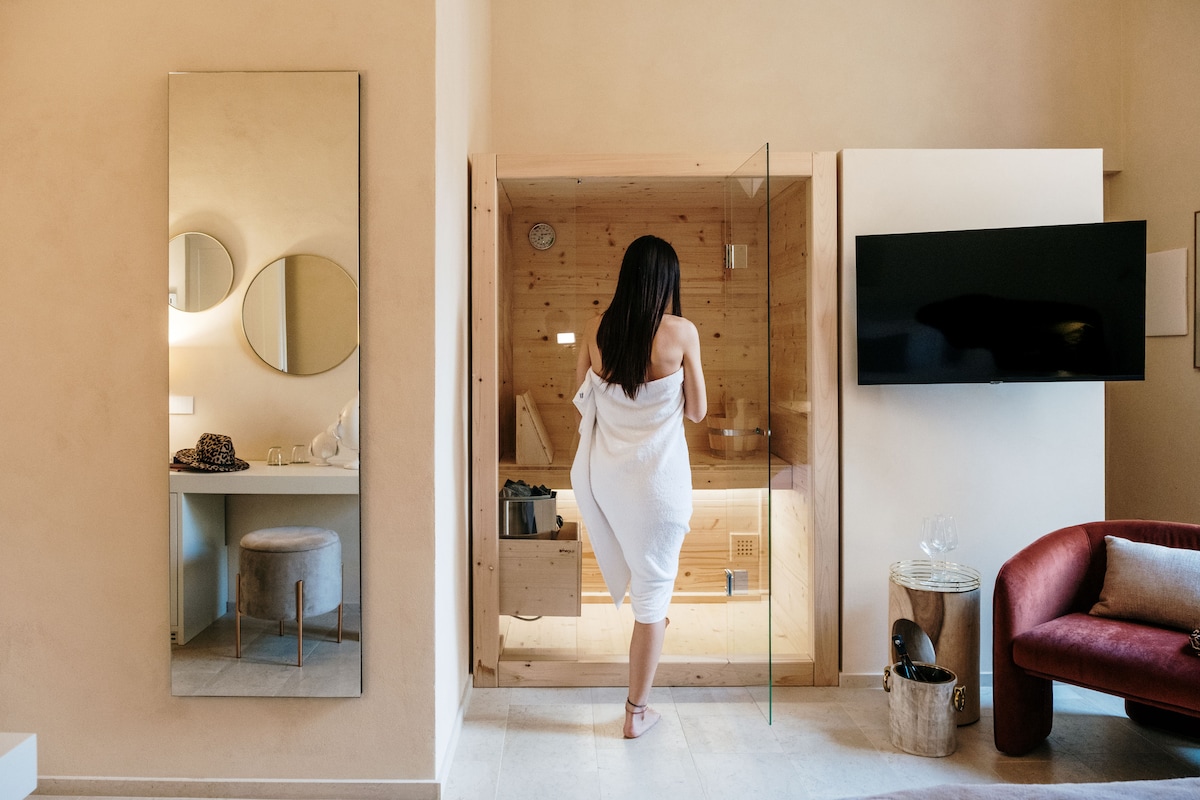 Serás recibido en una de las amplias suites del Palazzo Mandurino, la solución ideal para disfrutar de unas vacaciones con lujosas comodidades, con total autonomía y en nombre del encanto y el lujo. Cada suite, que se le asignará a su llegada, tiene una sauna o baño turco y una bañera de hidromasaje para dos. Te sumergirás en un edificio histórico, equipado con espacios y servicios adaptados a una pareja, organizado para dar la bienvenida a familias y grupos de amigos. Se puede proporcionar una pequeña cocina a pedido.