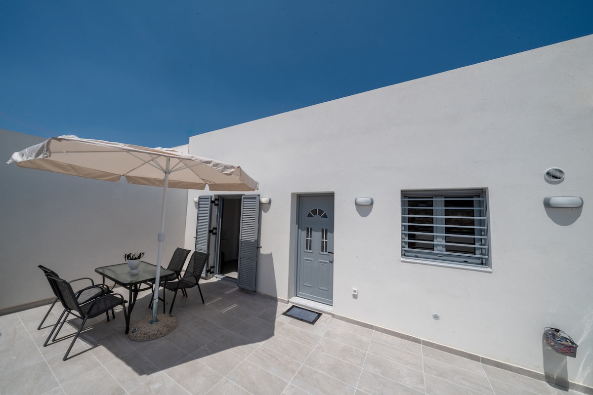 Villa Helena se encuentra en un vecindario tranquilo lejos de las vastas multitudes turísticas en medio de la isla en el pintoresco asentamiento de Mesaria. La casa está muy cerca del aeropuerto y de Fira, la capital. La villa ofrece dos dormitorios y un acogedor loft. También hay una gran sala de estar, una cocina totalmente equipada, dos baños principales, un patio trasero con barbacoa y una hermosa terraza con piscina de inmersión (no climatizada).