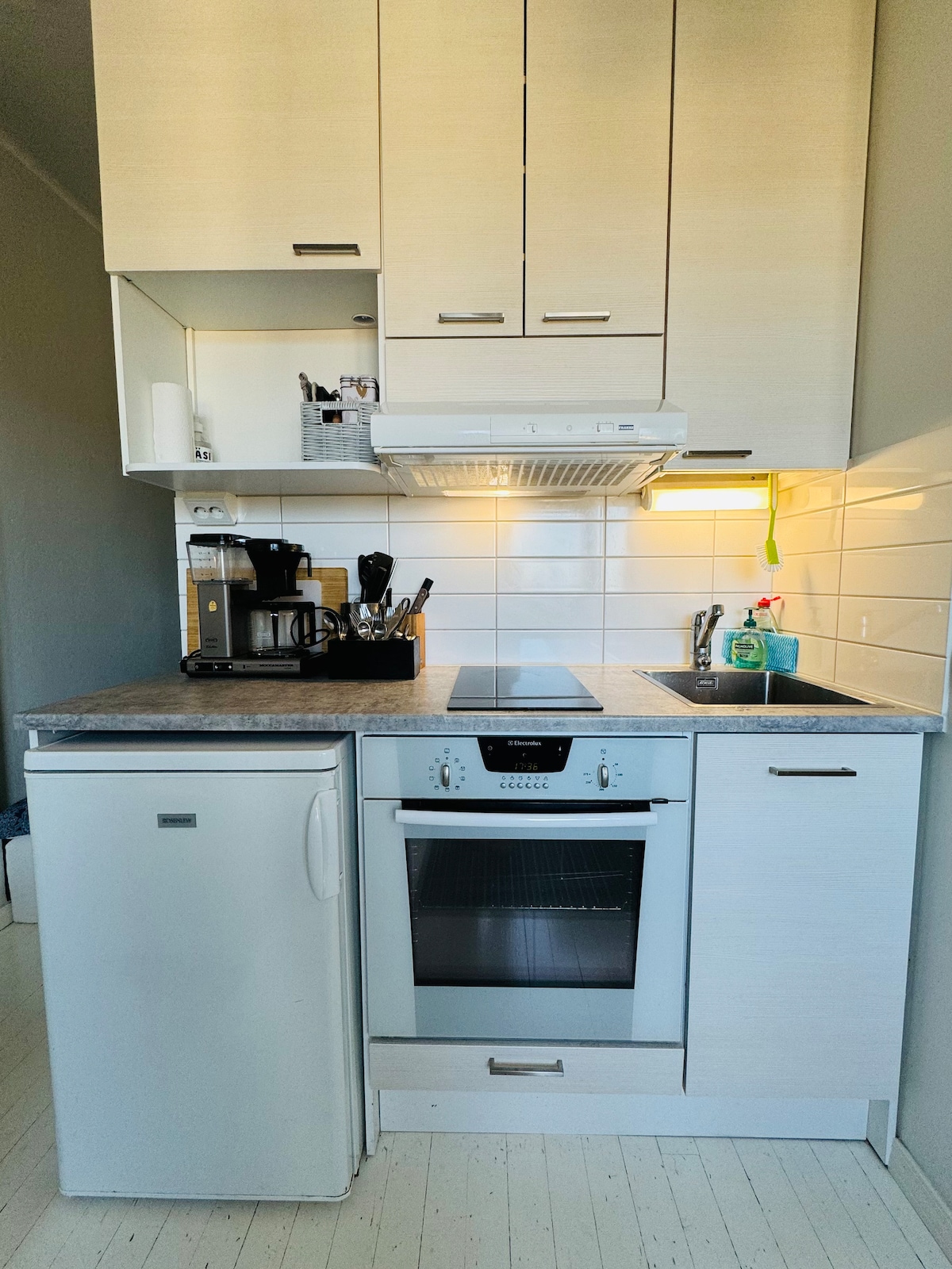 Un departamento de 45,5 m2 de un dormitorio en el piso 12 de la icónica casa Pasilantornit. Buen transporte público en todas las direcciones. Estacionamiento gratuito en el propio pasillo de la casa. NOTA: Entrada estricta al lugar P. No es apto para furgonetas o coches muy grandes. A poca distancia: Centro de Exposiciones 200 m, Böle Arena & Club 400 m, centro de natación Mäkelärinne 350 m, centro comercial de Tripla y estación Pasila 600 m, Veikkaus Arena 1,3 km, Linnanmäki y Sea Life 1,6 km, Estadio Olímpico 2,0 km, pista de hielo 2,0 km. Televisión de 58pulgadas con Netflix
