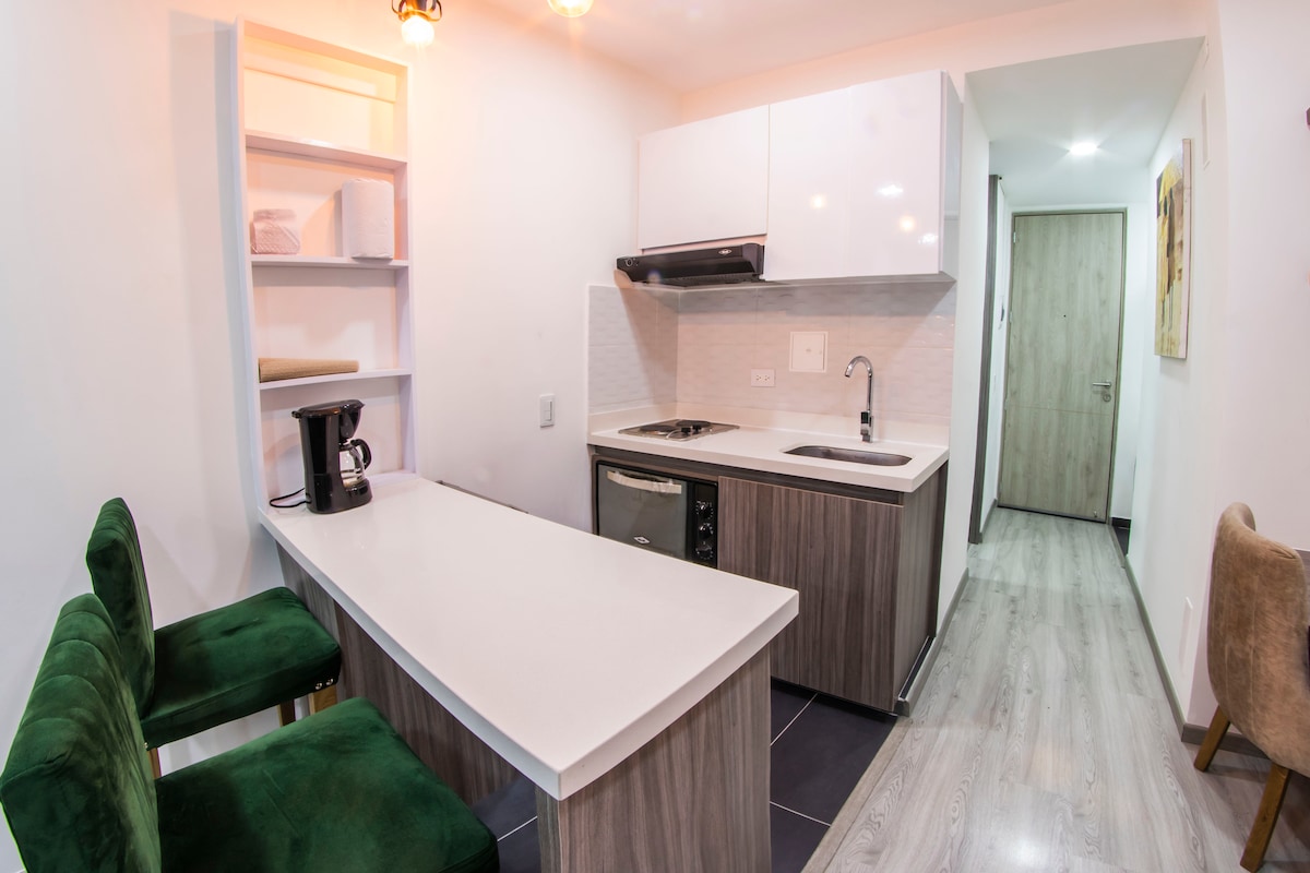 Acogedor departamento + Wi-Fi + espacio de coworking + gimnasio + cocina + agua caliente en Bogotá 24