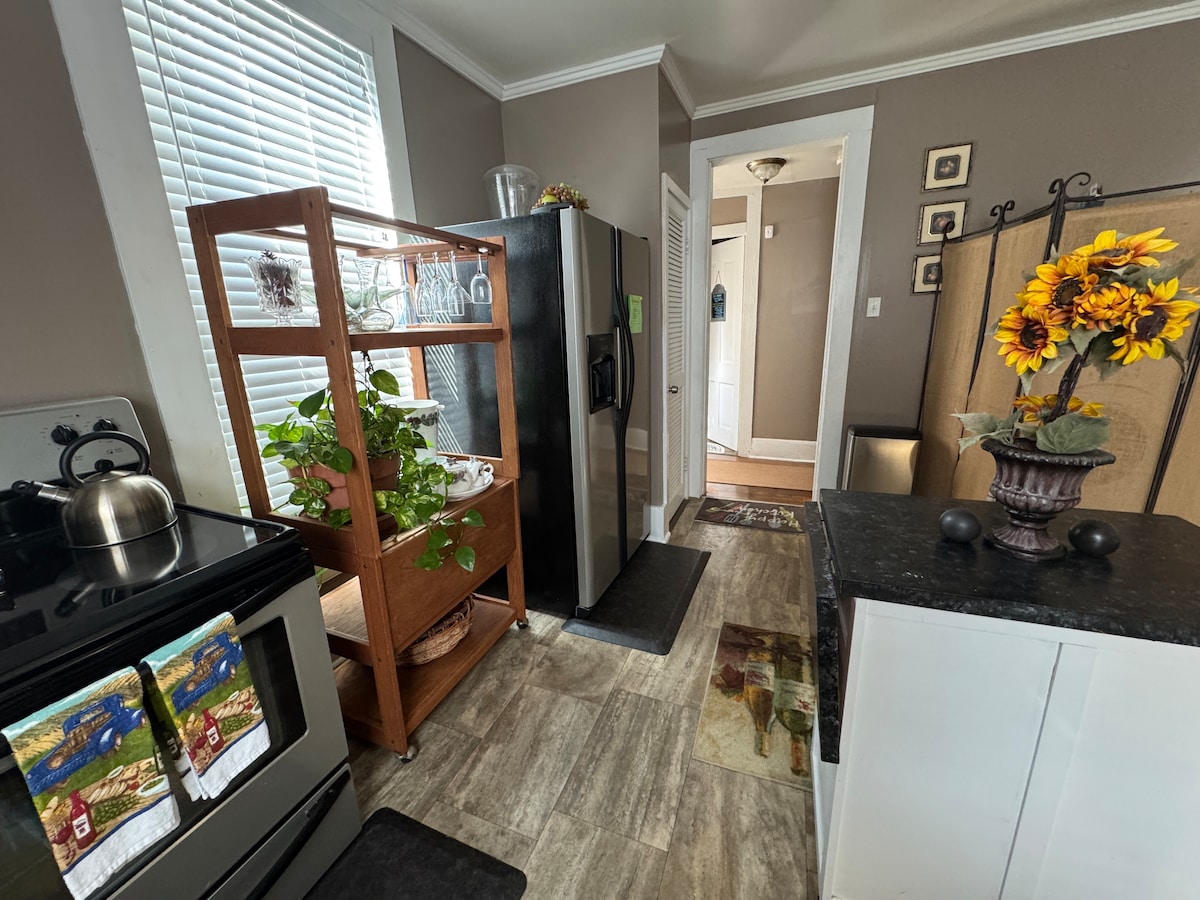 Historical district area of Paducah, KY. Approximately 1 mile (5 minutes) from downtown, river front, restaurants, Greenway walking/running/biking trail, etc. Nice, clean, friendly neighborhood and safe (1/2 mile from local Police and Fire station). Additionally, transportation to various fine dinning establishments can be provided for a nominal fee with prior notice. Note: Local reservations are welcome, but typically not suited for our business policy model.