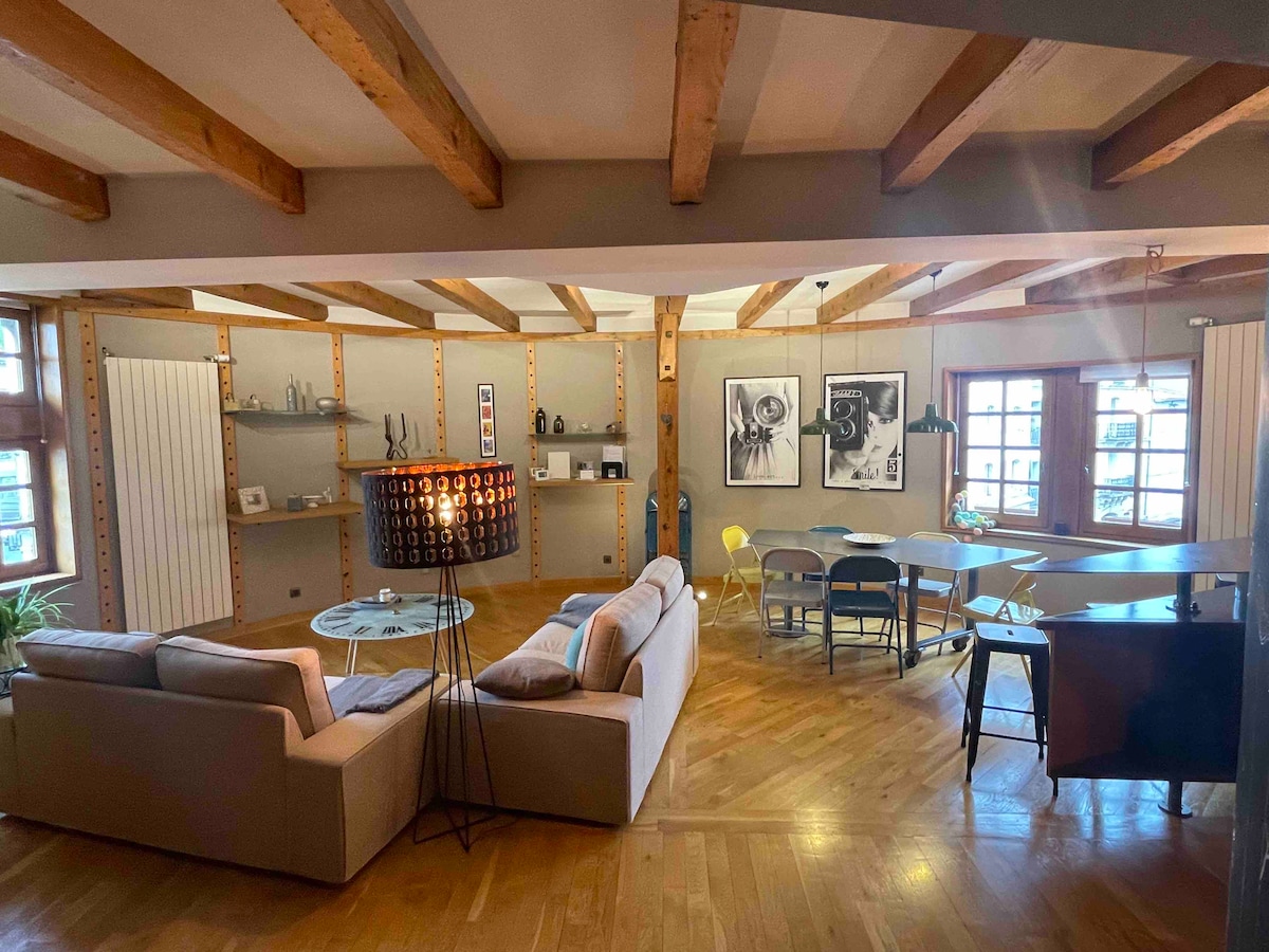 Regálate una escapada romántica en una granja renovada del siglo XVIII. Estudio cálido con vistas panorámicas a las montañas, jacuzzi y sauna privados, sin vecinos enfrente. 🌹 Champán, flores y pétalos disponibles para embellecer sus veladas. Acogedor espacio exterior con barbacoa, a 5 min de los restaurantes y el río. 📍35 min de St-Étienne, 10 min de Yssingeaux, 30 min de Le Puy, 10 min de las pasarelas himalayas.