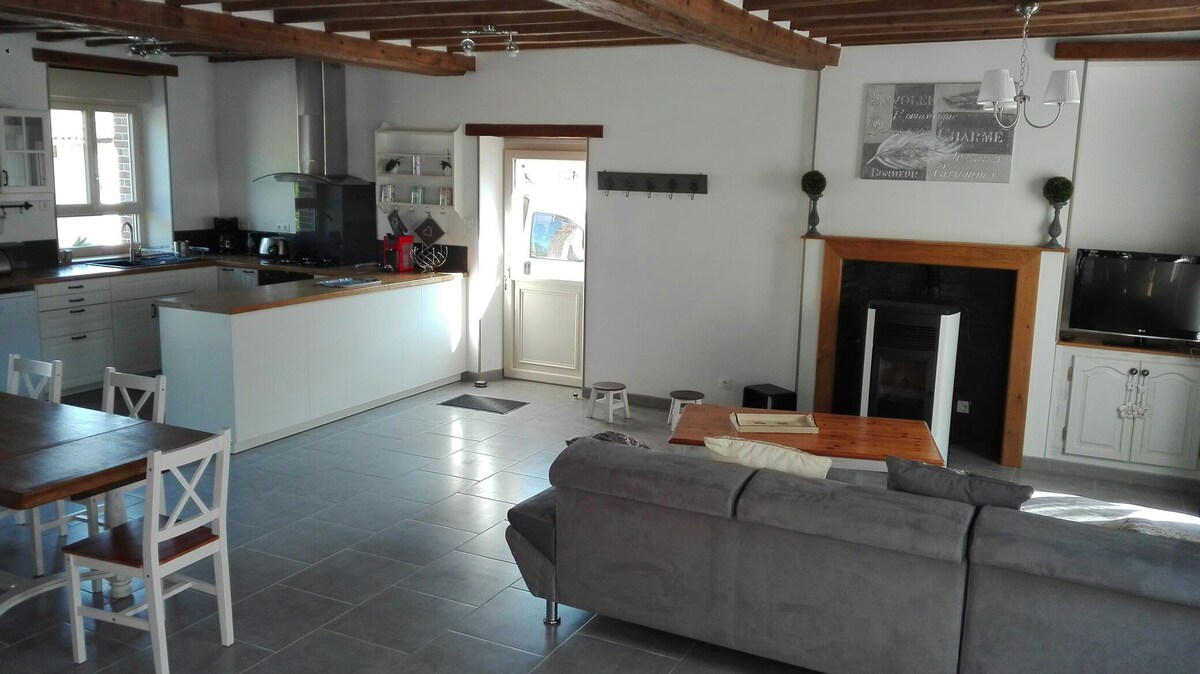 Casa en una aldea tranquila que incluye: Gran sala de estar (salón, comedor, cocina), 3 dormitorios, uno de ellos con baño privado, un baño, WC y un lavadero con lavadora Cocina totalmente equipada (lavavajillas, nevera/congelador, horno, microondas, hervidor eléctrico) Estacionamiento privado Muebles de jardín, barbacoa, mesa de ping pong y juegos al aire libre Se proporciona ropa de cama (camas hechas a la llegada, toallas de baño y paños de cocina)