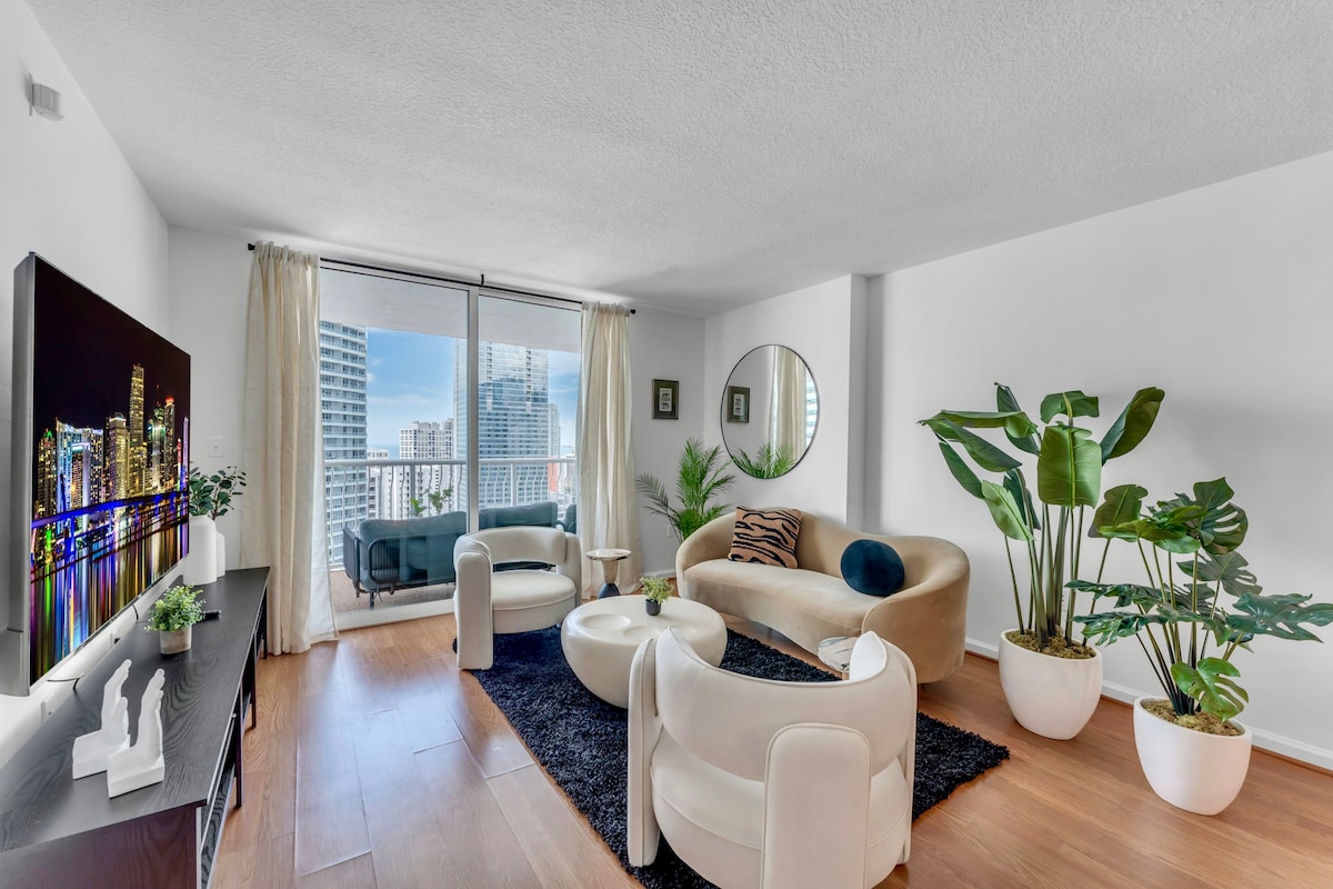Este apartamento está situado en un impresionante condominio en el corazón del centro de Miami. Está a poca distancia a pie del Miami Heat Arena, Bayside Marketplace, museos, centros comerciales, restaurantes, bares y varios lugares de entretenimiento. Un corto trayecto en coche te lleva a las playas, Wynwood Walls, Coconut Grove y Marlins Stadium. El Aeropuerto Internacional de Miami está a solo 15-20 minutos, mientras que el Aeropuerto de Fort Lauderdale está a menos de una hora en coche