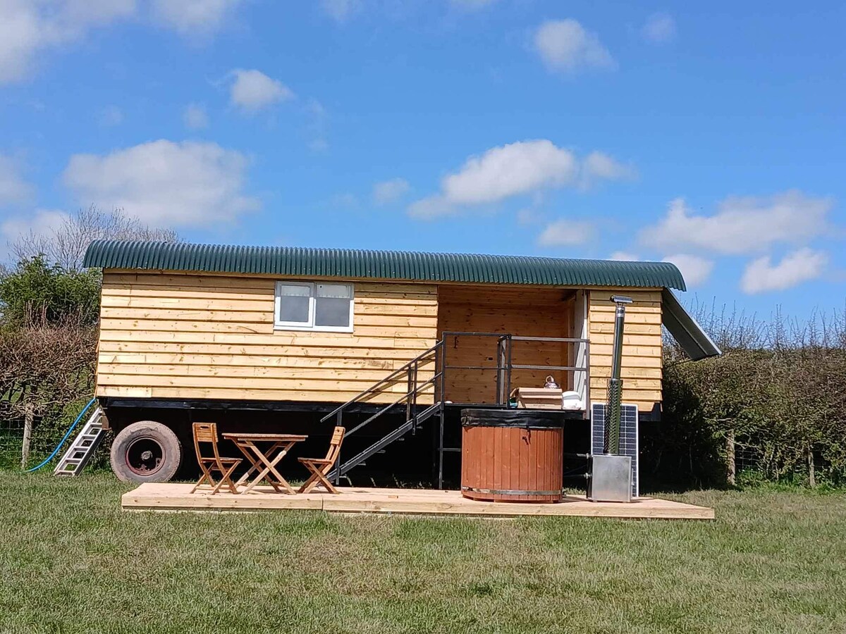 Carromato de lujo. Ubicado en el borde del parque nacional de Brecon Beacons y a menos de media milla de la montaña Cats Back en una granja de alpacas. Impresionantes vistas. En el interior encontrarás que la cabaña Herdwick tiene hermosos acabados e incorpora una cama doble, una placa de cocción, un fregadero, una nevera y un baño privado. Disfruta de un paquete de bienvenida que incluye algunos troncos secados en horno para la estufa de leña o úsalos para tu fogata mientras contemplas las estrellas. Tengo otra cabaña si esta está reservada: https://abnb.me/arO1wERKjBb