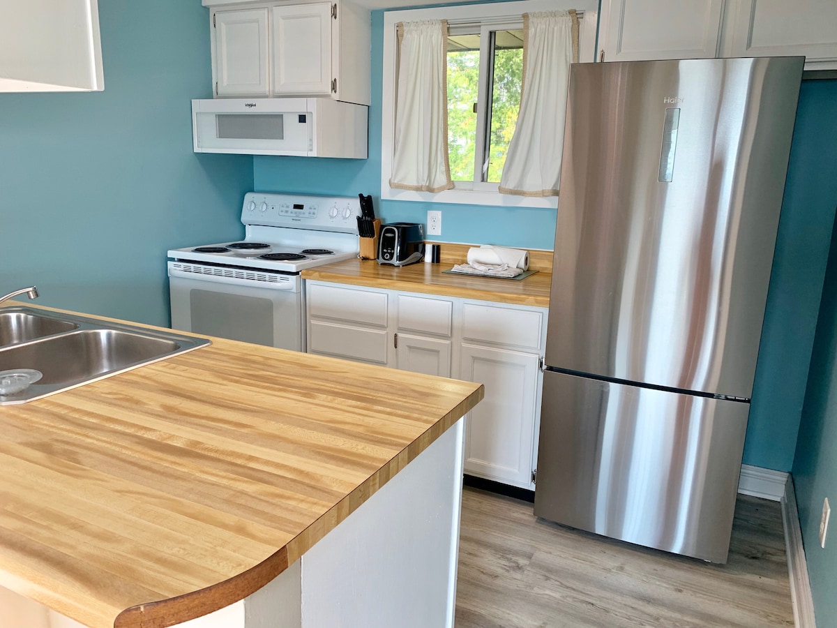 ¡A 7 minutos del Festival Ecuestre! Ubicado en la hermosa East Bay de Traverse City, este alojamiento acaba de ser completamente remodelado. ¡El apartamento está a pie de playa! A minutos del centro de Traverse City, bodegas y mucho más. Disfruta relajándote bajo el sol en 600 pies de playa de arena privada o alquila un kayak, motos acuáticas o tabla de remo. Este apartamento de estilo estudio es una unidad final con preciosas vistas a la bahía. ¡Este apartamento tiene una ducha increíble con cabezal de lluvia y 3 aerosoles corporales!