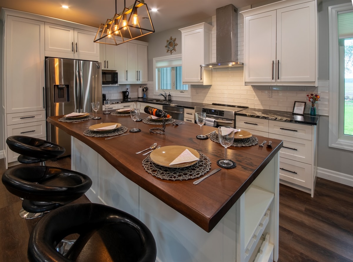 Luna Vibes Delight es un refugio tranquilo y elegante, perfecto para descansar y relajarse en el corazón de Lambton Shores. A poca distancia en coche de playas, bodegas, mercados y campos de golf, con un acceso al río Ausable en nuestra calle. Esta casa de una sola planta cuenta con acabados modernos y un gran terreno privado que da a tierras de cultivo. Relájate en la terraza del patio trasero y disfruta de las tranquilas puestas de sol de color rosa en un entorno tranquilo y sereno.