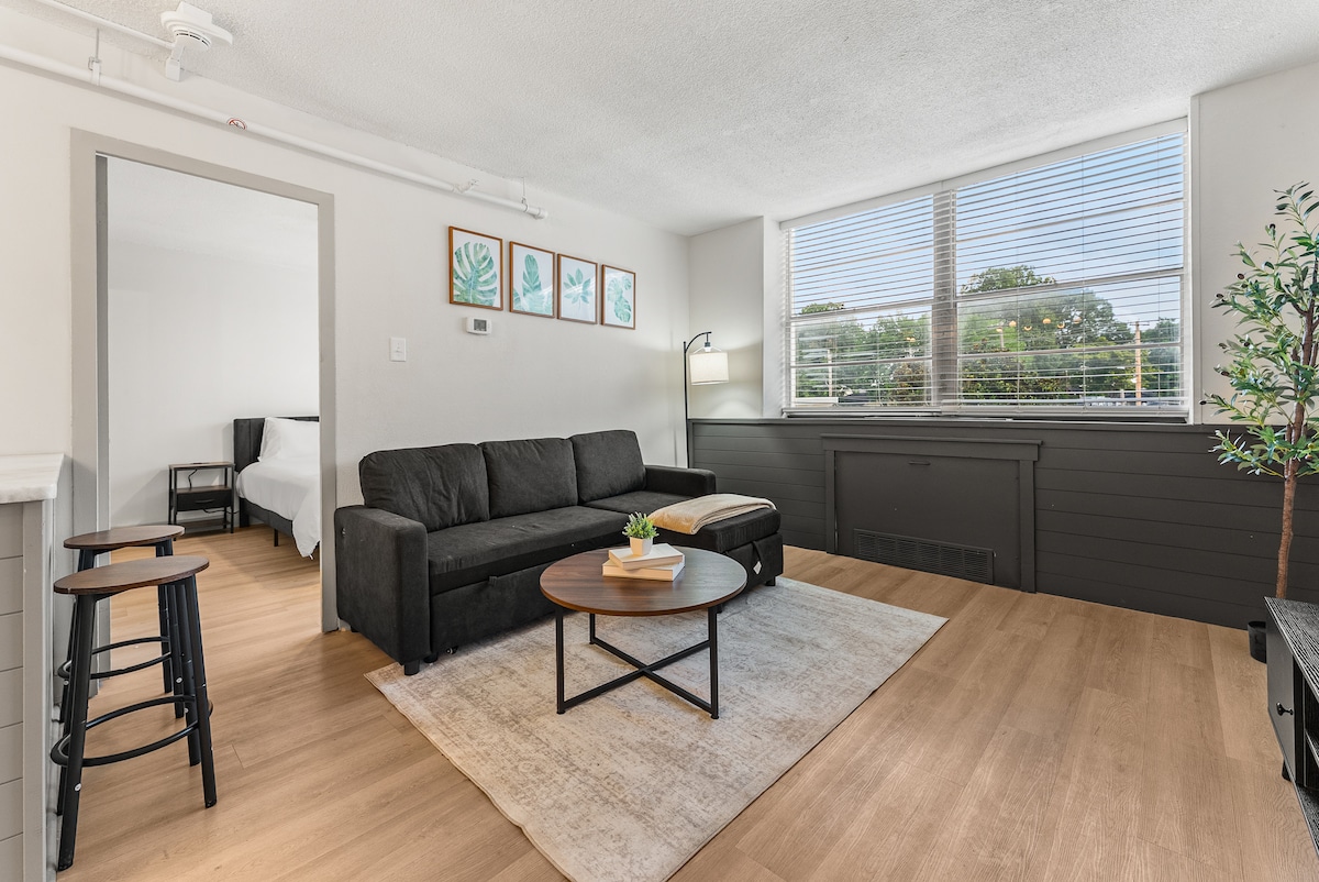 🛏️ Características Elegante apartamento de 1 dormitorio con suelos de madera, armario espacioso y cocina totalmente equipada con electrodomésticos de acero inoxidable. 🌇 Ambiente Luminoso y tranquilo, con mucha luz natural, perfecto para relajarse después de un día fuera. 📍 Ubicación Ubicado en el centro de Memphis, a poca distancia de cafeterías, tiendas y transporte público para un fácil acceso a toda la ciudad. 🐾 Adicionales Se admiten mascotas, 🐾 con lavandería en el sitio 🧺 y check-in automático🔐. Ideal para viajeros solitarios o parejas que buscan una acogedora base de operaciones.