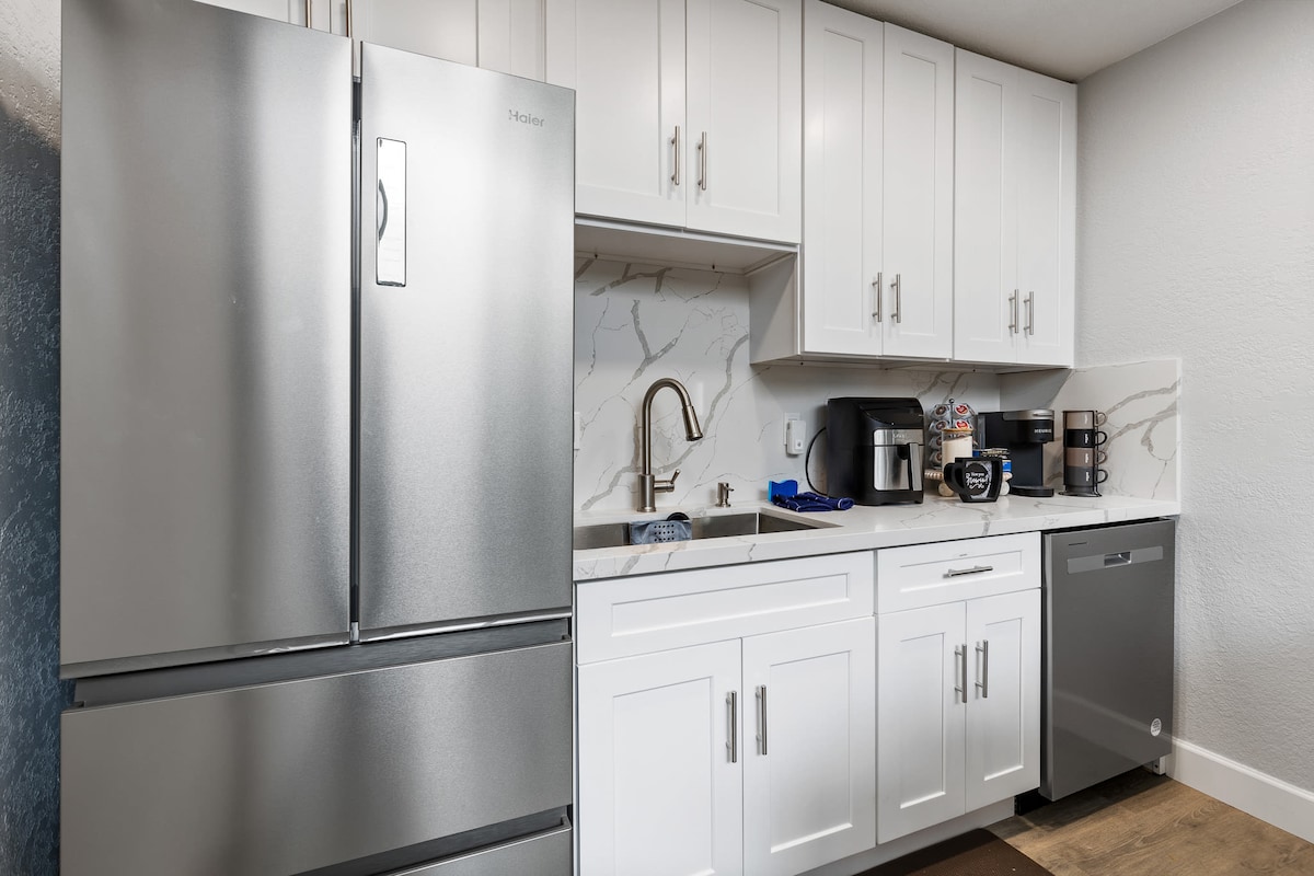 Disfrute de una estancia de vacaciones relajante en nuestra casa elegante, limpia y moderna. Esta bonita cabaña incluye una cocina totalmente equipada con un refrigerador de 4 puertas de 27 pies cúbicos, una nueva lavadora y secadora de carga frontal con tecnología de vapor, WIFI de alta velocidad gratuita, dos televisores Vizio 4k de 55pulgadas con Netflix, área de trabajo dedicada para todas sus necesidades a corto y largo plazo.