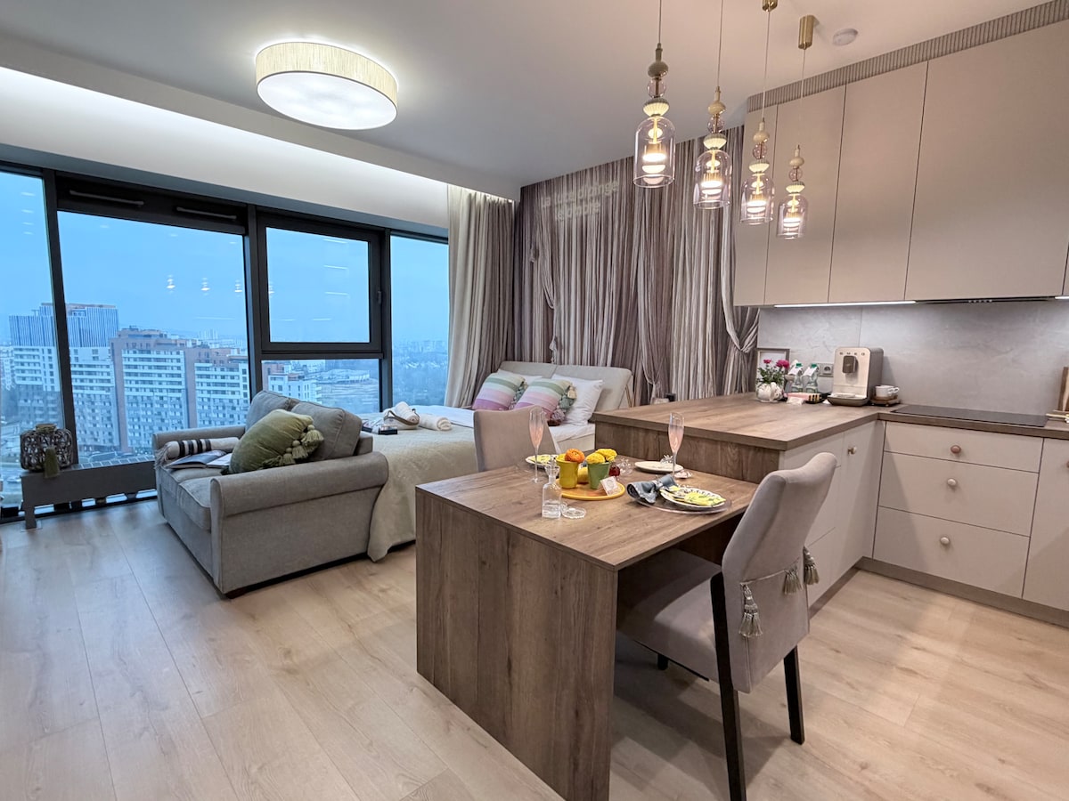 Apartamento moderno y confortable situado en la 11ª planta de un edificio ubicado en el paseo marítimo del lago, en el complejo de edificios Panorama Kwiatkowski en Rzeszów. La ubicación del apartamento ofrece una oportunidad única para disfrutar de la naturaleza cerca del centro de la ciudad, a poca distancia de los bulevares de Rzeszów. Mientras descansas en este lugar, puedes disfrutar de la playa, el muelle, el paseo marítimo, los carriles bici y los senderos, los parques infantiles, así como de las tiendas y los restaurantes.