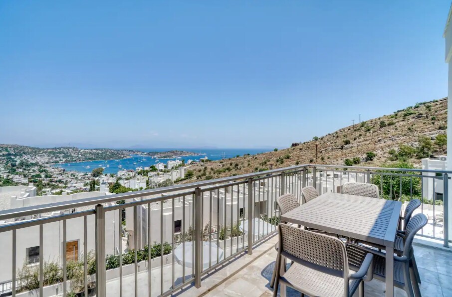 Propiedad de lujo, con vistas panorámicas a Bodrum, piscina privada (totalmente privada, para tu uso exclusivo, solo accesible desde el apartamento); 2 dormitorios, 2 baños, gran solárium privado, cocina totalmente equipada, ropa de cama y toallas de baño incluidas, en una zona residencial tranquila, a pocos minutos a pie del centro de la ciudad y la playa :) Amueblado y mantenido en «blanco» de conformidad con los colores locales de Bodrum, con buganvillas rosas que dan sombra. https://myalbum.com/album/DedlvO3eIvto