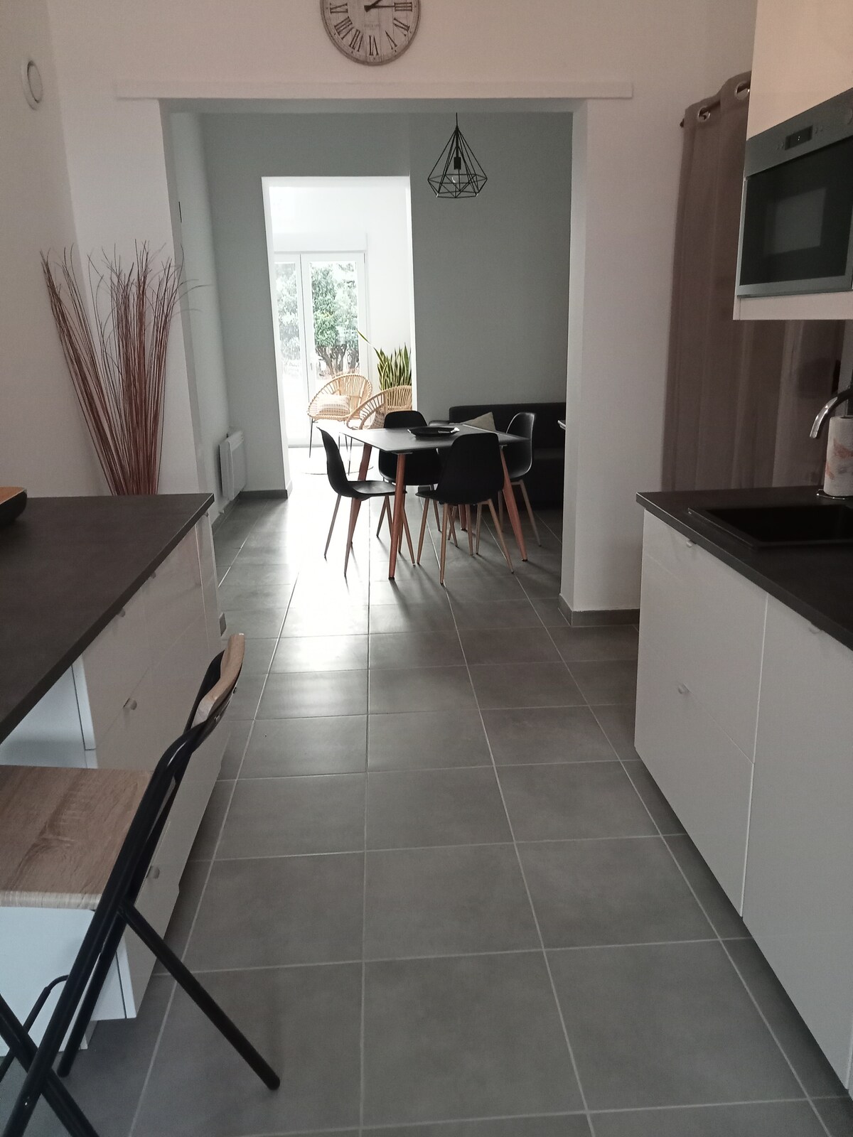 Bienvenue dans notre havre de paix , climatisée, à la déco moderne, havre de paix au fond d'une impasse. Profitez de la terrasse avec un bout de jardin pour vos repas, du terrain de pétanque à disposition L’intérieur offre un séjour, une cuisine équipée avec lave-linge, une chambre séparée et une salle de douche moderne. Parking privé. À 15 min de Perpignan, 20 min de la mer, 40 min des montagnes et de l’Espagne.