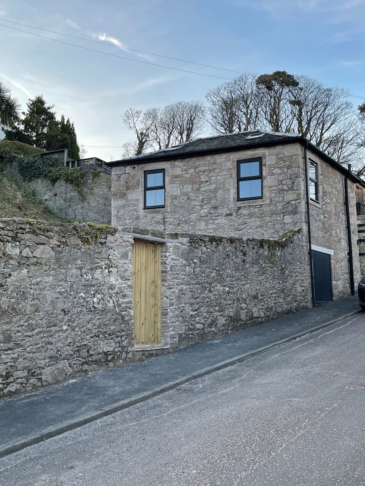 Alojamiento 2/3 Apartamento independiente adyacente a la casa principal con entrada propia, en primera línea de mar en el centro de Dunoon, con impresionantes vistas al Clyde y hasta Cumbrae, Bute y Arran. A 1/4 de milla del ferry de pasajeros y a una milla y media del ferry de coches Hunter's Quay, a 5/10 minutos a pie de tiendas, cine y restaurantes. Camina, pedalea, navega en kayak, nada. Salón/estudio lleno de libros con sofá cama, dormitorio doble, cocina, baño con ducha, acceso al jardín trasero seguro con estanque de peces. Se admiten perros si son amigables con los míos.