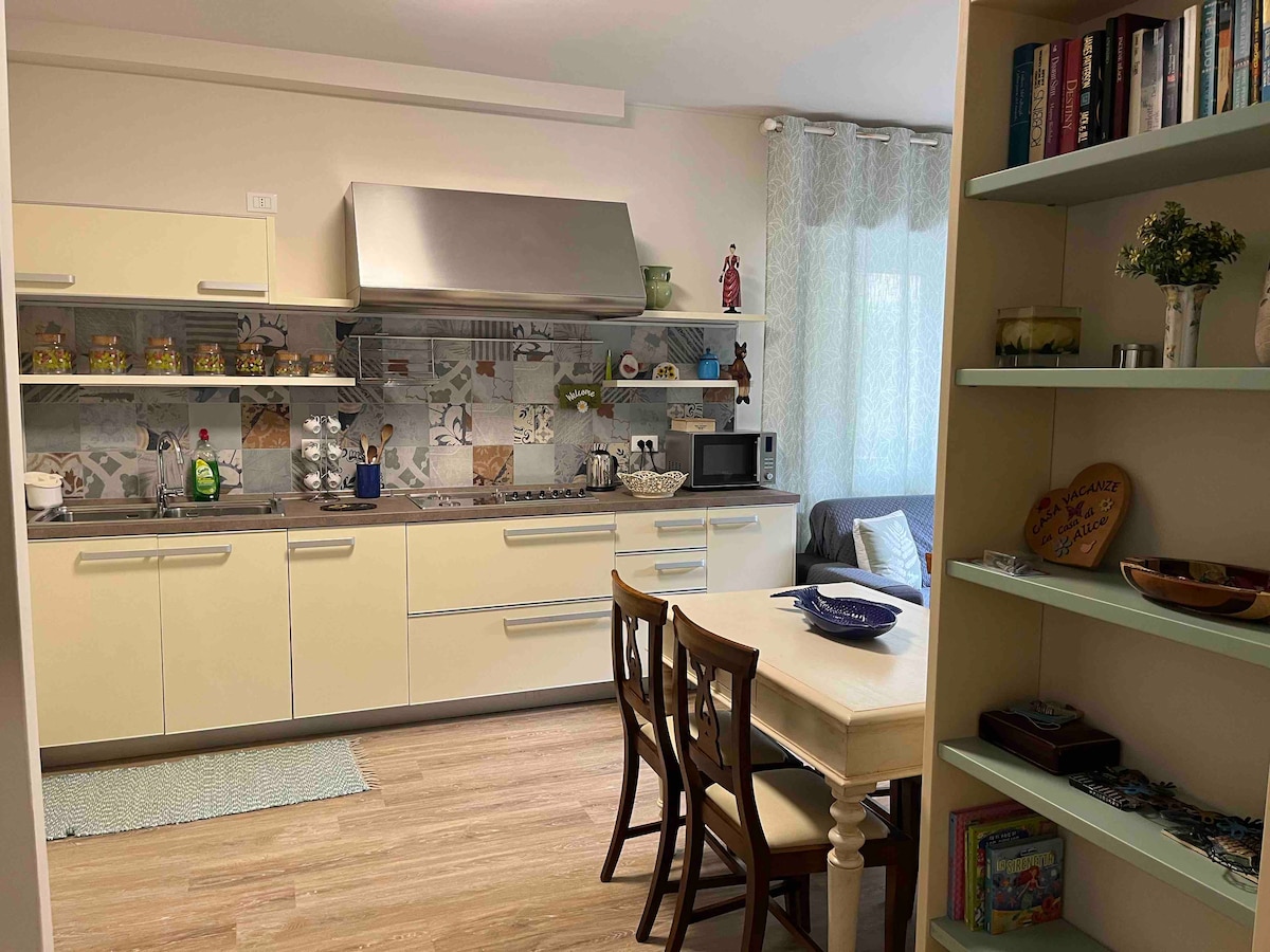 «La Casa di Alice» es un acogedor apartamento de dos habitaciones (45 m²) recientemente renovado en un elegante complejo residencial, a pocos pasos de la estación de tren y autobuses. Tiene 4 camas, 1 cama doble y un sofá cama, y una cuna bajo petición. Al otro lado de la casa, en Via Residenze 4, hay cuatro plazas de aparcamiento que casi siempre están libres. El centro histórico está a 8 minutos a pie y a otros 3 minutos de la orilla del lago.
