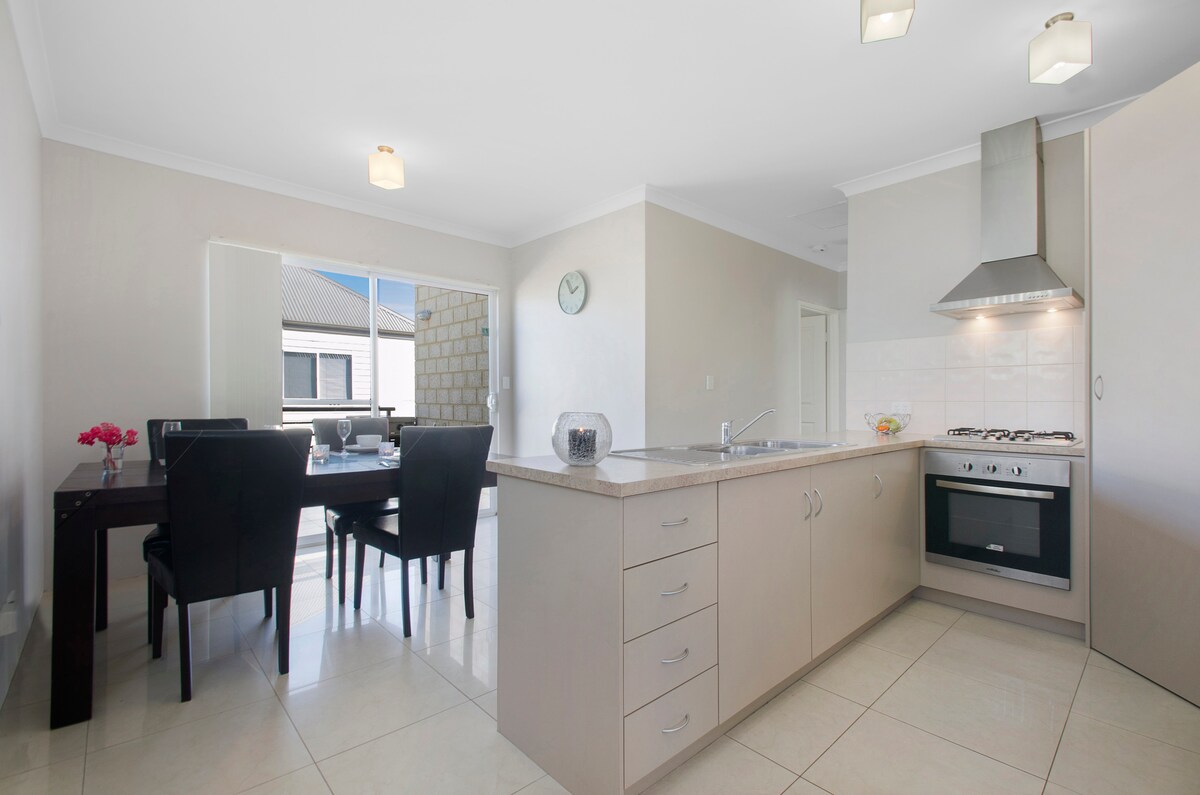 EL ESPACIO El apartamento es una casa de alquiler de corta duración totalmente amueblada, perfecta para visitantes, personas que se mudan o migrantes a Perth. Adecuado para solteros, parejas o familias pequeñas. Puedes disfrutar de esta propiedad amueblada de primera calidad, pero asequible, como base cerca de las playas del norte de Perth. Tu estancia será cómoda y refrescante. Se proporcionan sábanas, toallas, té/café/azúcar, utensilios, cubiertos y electrodomésticos de cocina para tu comodidad. Solo trae ropa y artículos personales.
