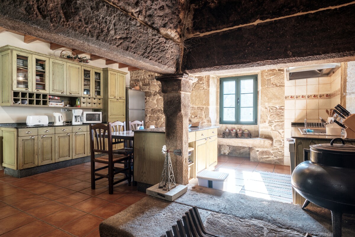Encantadora casa de piedra situada en la serena campiña de Rías Baixas. Ideal para familias o grupos pequeños, cuenta con una chimenea de leña, wifi de alta velocidad y vistas panorámicas al mar. Disfruta de senderos exuberantes, playas ocultas, cultura gallega y delicias gourmet, todo a solo 30 minutos de Santiago de Santiago de Compostela.