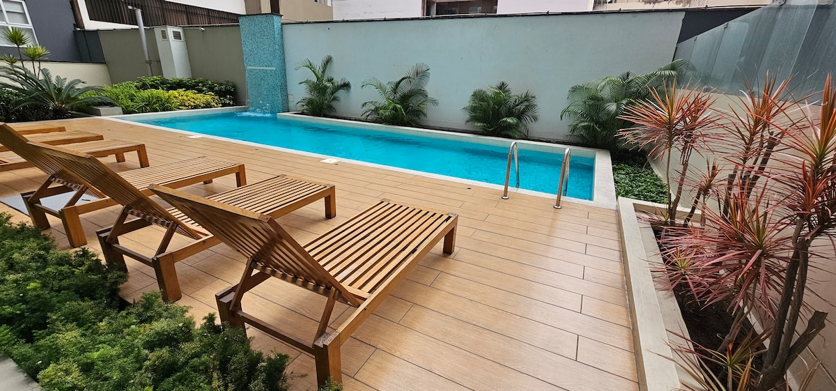 Piscina en la azotea de un increíble loft con vistas a Barranco y gimnasio