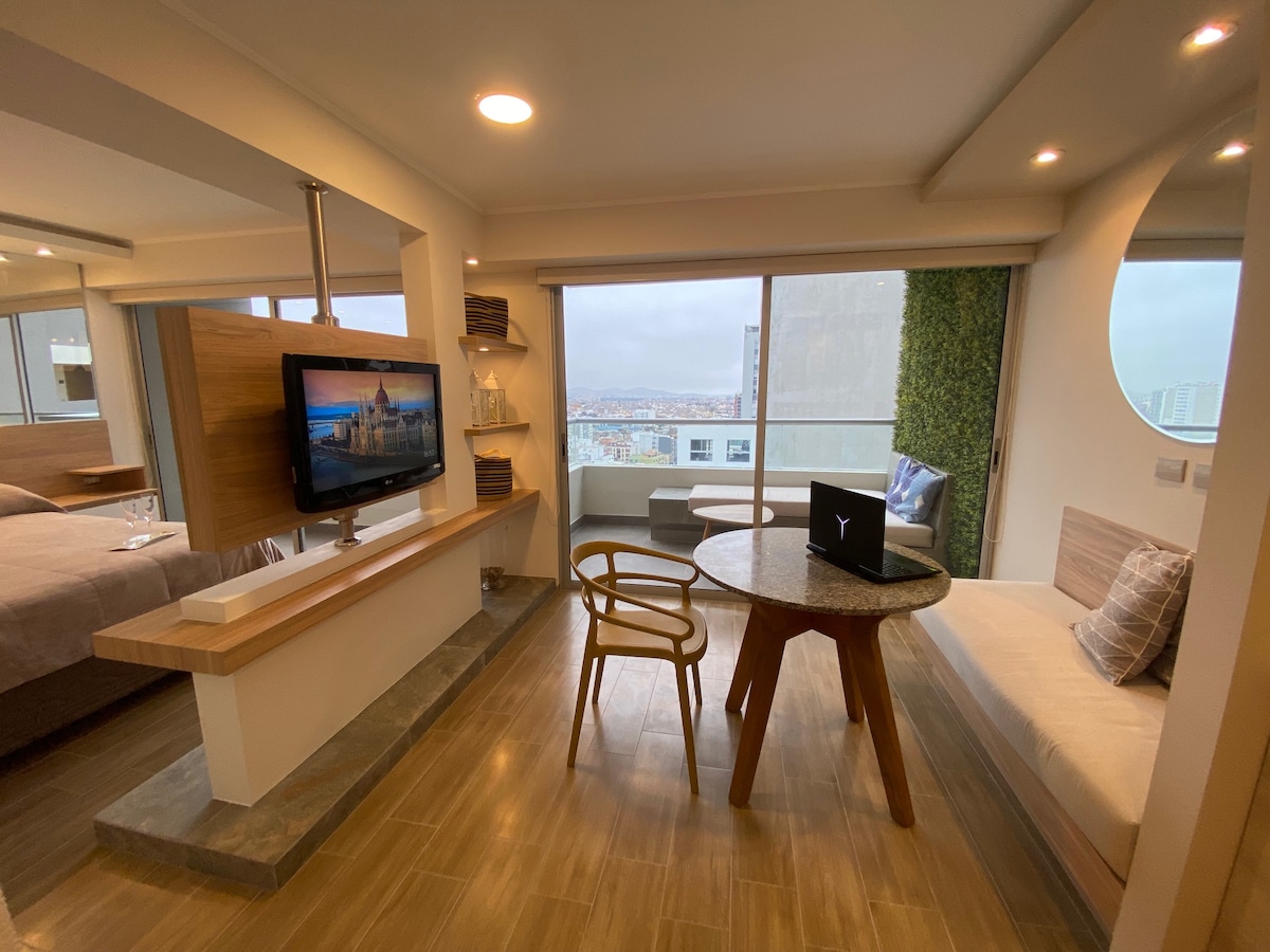 M | Loft panorámico con vistas al mar/ciudad en Barranco
