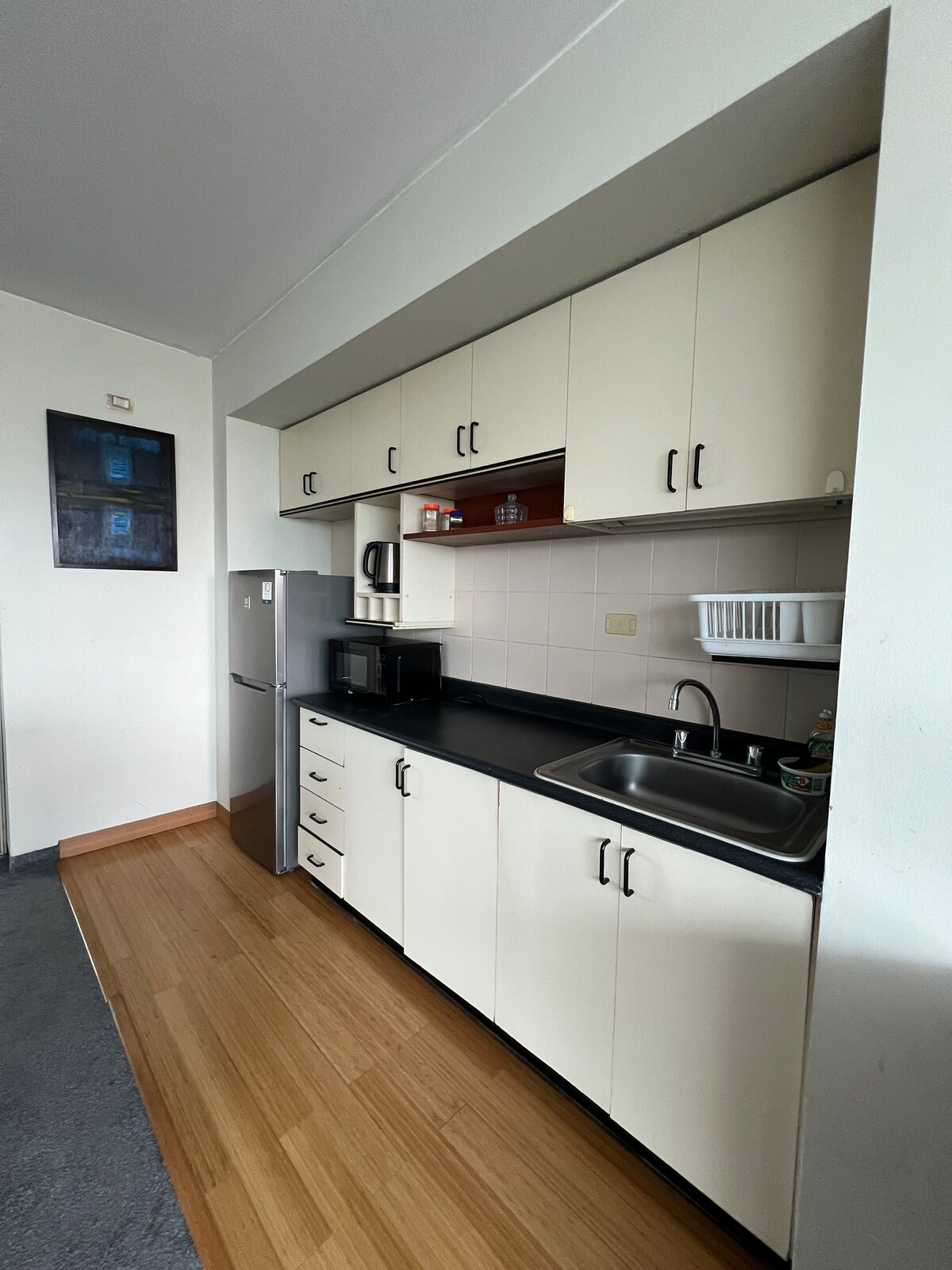 Kitchenet bien equipado. 2 ambientes adicionales amplios en un área total de 65m2 divididos en sala con sofá cama doble, smart TV de 55 ", con app Netflix, servicio cable premium canales de adultos, radio-parlante con bt aux usb y wifi, Telf llamada local. Diversos puntos de luz cálida led . Ventiladores. Habitación con smart TV 55" amplísimos closets, caja de seguridad, cama doble, sofá cama individual, aire acondicionado (consultar). Baño con jacuzzi, vidrios templados y extractor de aire.