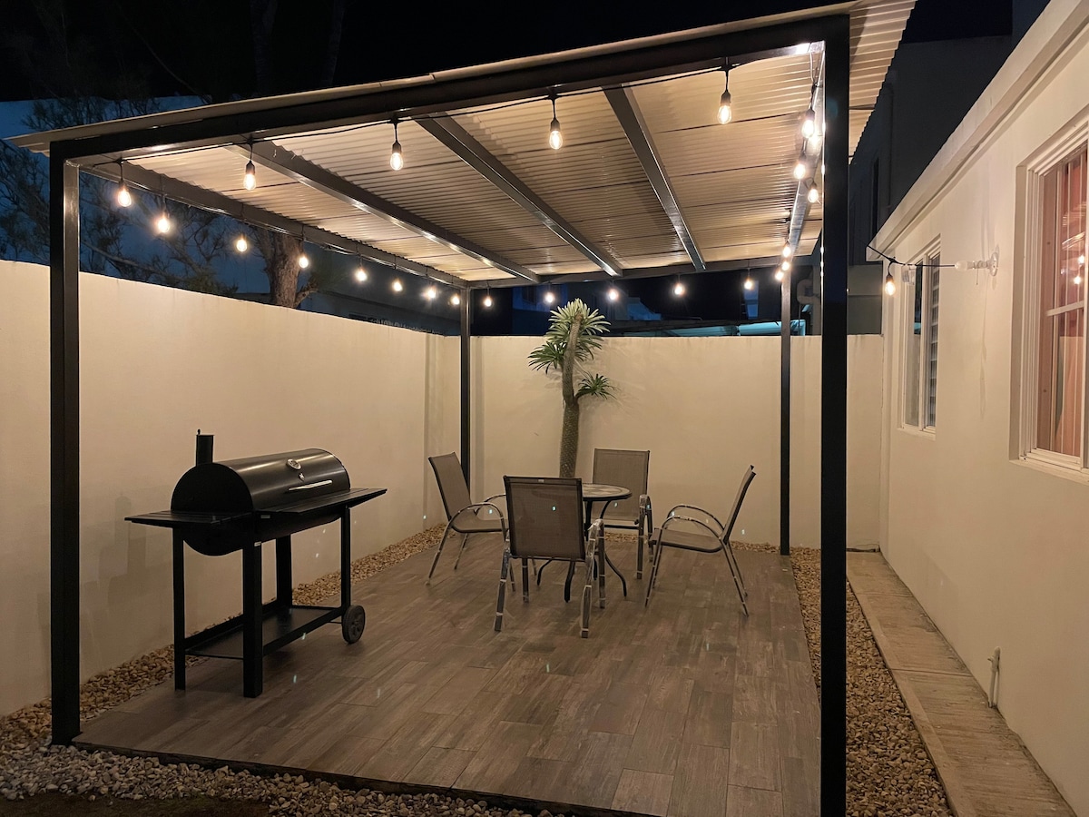 Cómodo mini departamento, con una habitación muy amplia y todo lo necesario para una estancia agradable y placentera, cuenta con una cama matrimonial, un sofá cama, cocina equipada, un baño amplio, aire acondicionado, smart tv con netflix, Internet y una excelente ubicación, muy cercana a las partes más visitadas de nuestra ciudad.