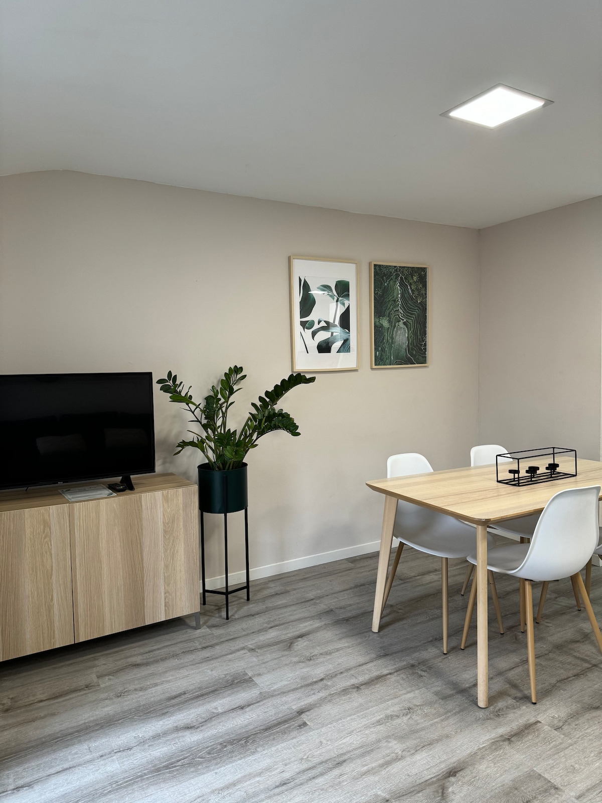 Amplio apartamento de 60 m2 en la planta baja del jardín. Moderno y con todas las comodidades. En un bonito pueblo con todas las comodidades. En invierno y entre temporadas: este tranquilo apartamento es ideal para alojar a una pareja, una familia pequeña o personas que viajan por trabajo. En verano: el apartamento se mantiene muy fresco. El ambiente puede ser un poco más animado y se puede disfrutar de una terraza compartida con barbacoa y una piscina de agua salada de 9x4. Así como muchas zonas de tumbonas y muebles de jardín.